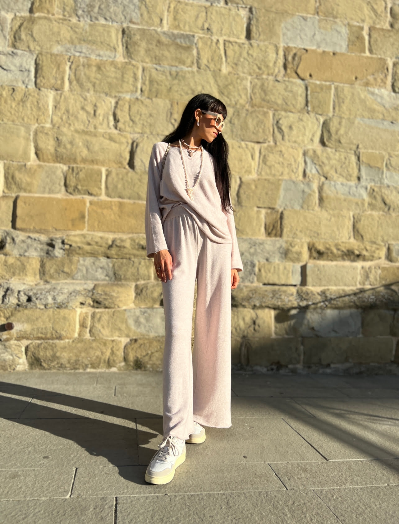 Il mio capo preferito di questa categoria è senza ombra di dubbio il completo: meglio se con panta over e decisamente oversize. Il mio consiglio a riguardo è di sceglierlo ampio e morbido, eviterei (strano, ma vero) il nero prediligendo i colori. La mia preferenza è senza dubbio la tinta unita in modo da abbinarci davvero tutto e per uno stile ancora più vostro, vi suggerisco di indossarlo insieme ad una cascata di gioielli! Se Rosa Cipria ovviamente, il tutto vi donerà ancora di più!