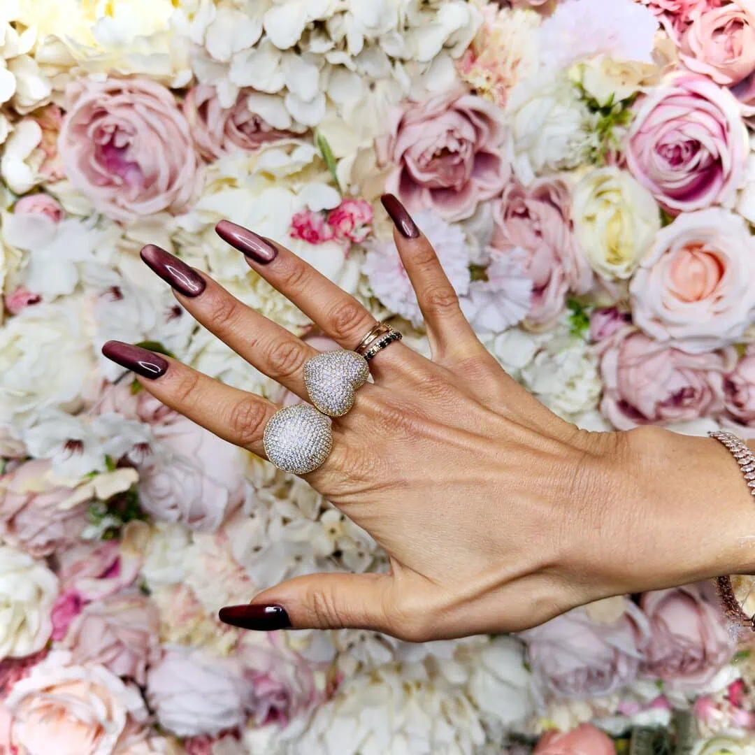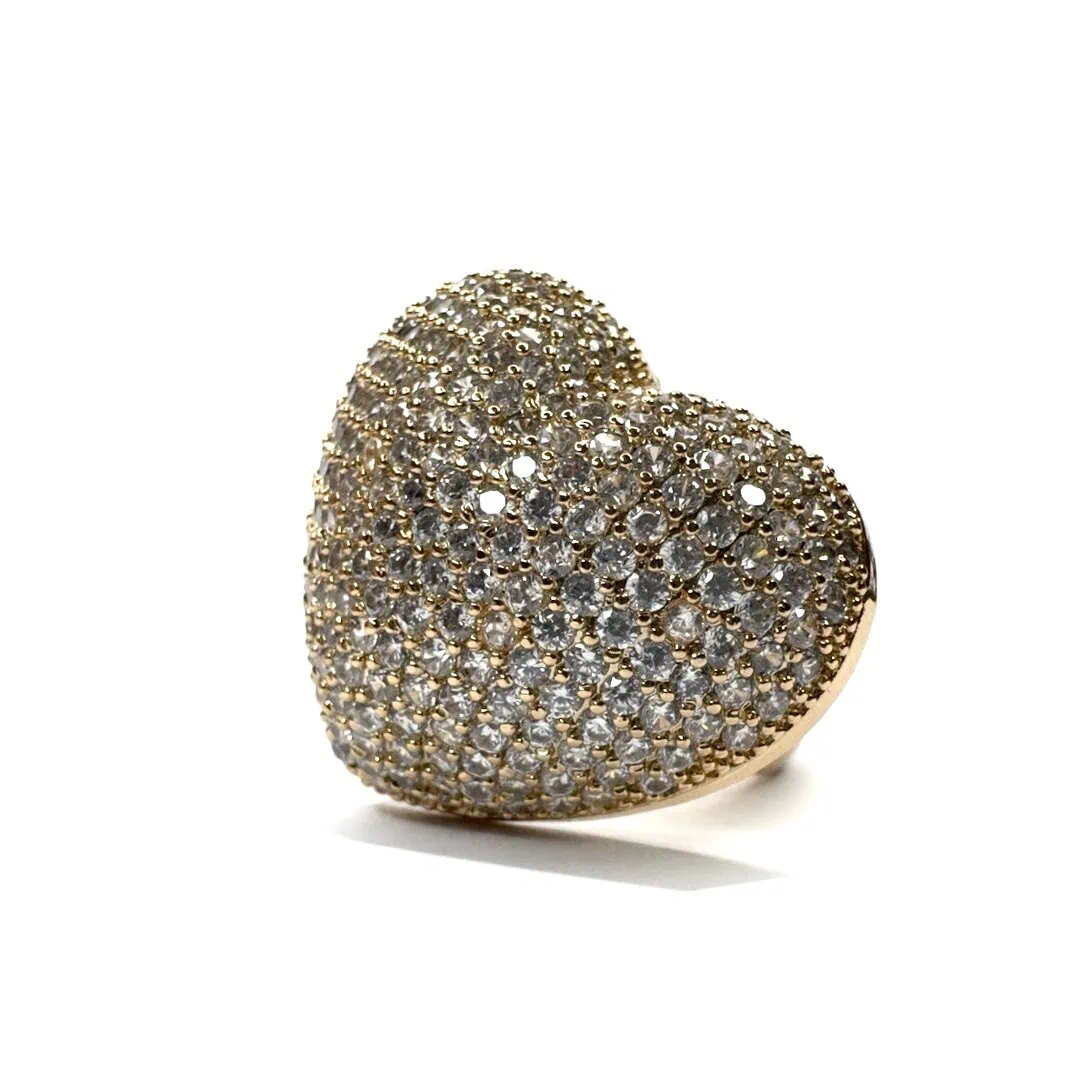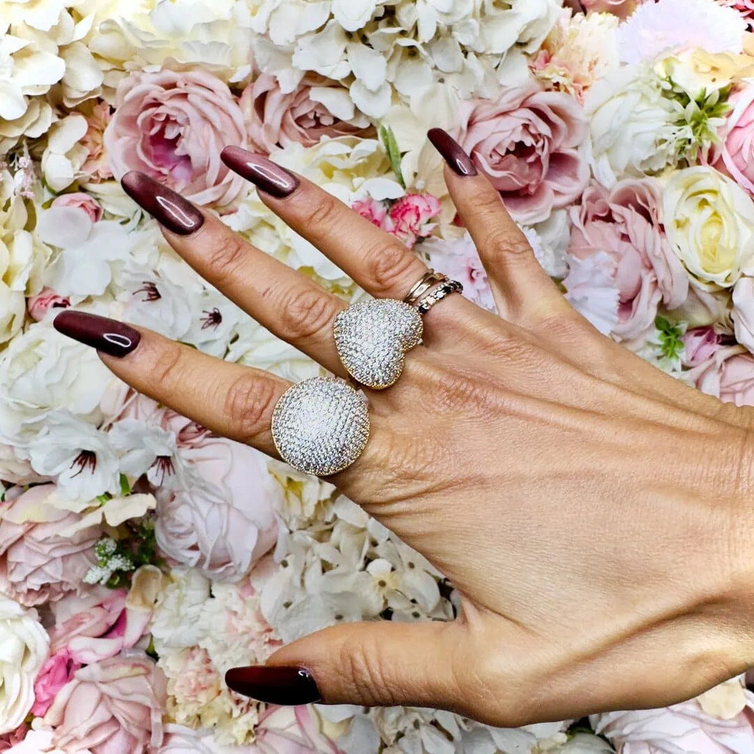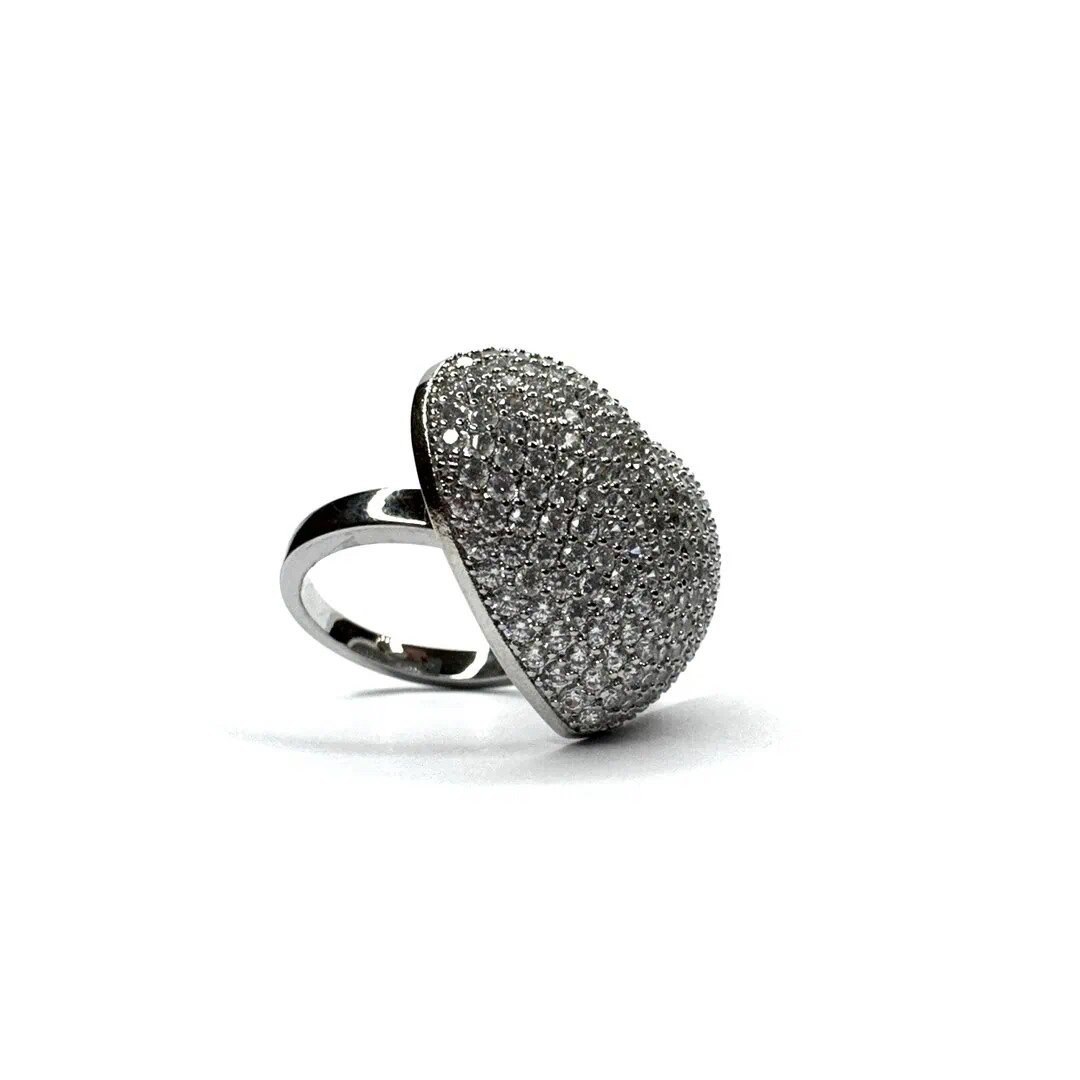 Anello swarovski regolabile in acciaio placcato oro rosa o argento con pavé di strass a forma sferica 3d o di cuore 3d.