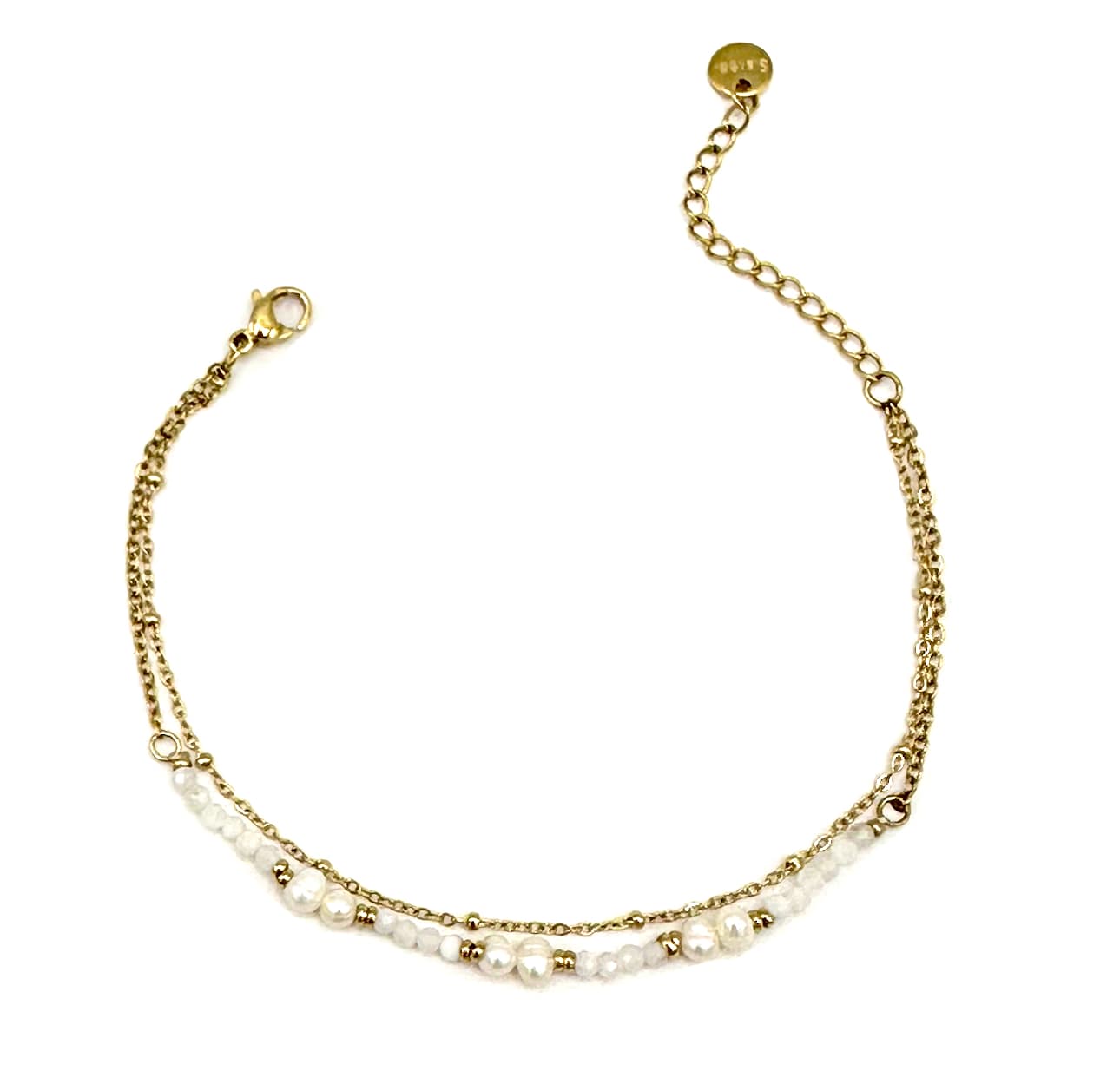 Tag: bracciale, braccialetti, braccialetto, bracelets, catena, chunky jewelry, oro, perline, rosa cipria, shopping online