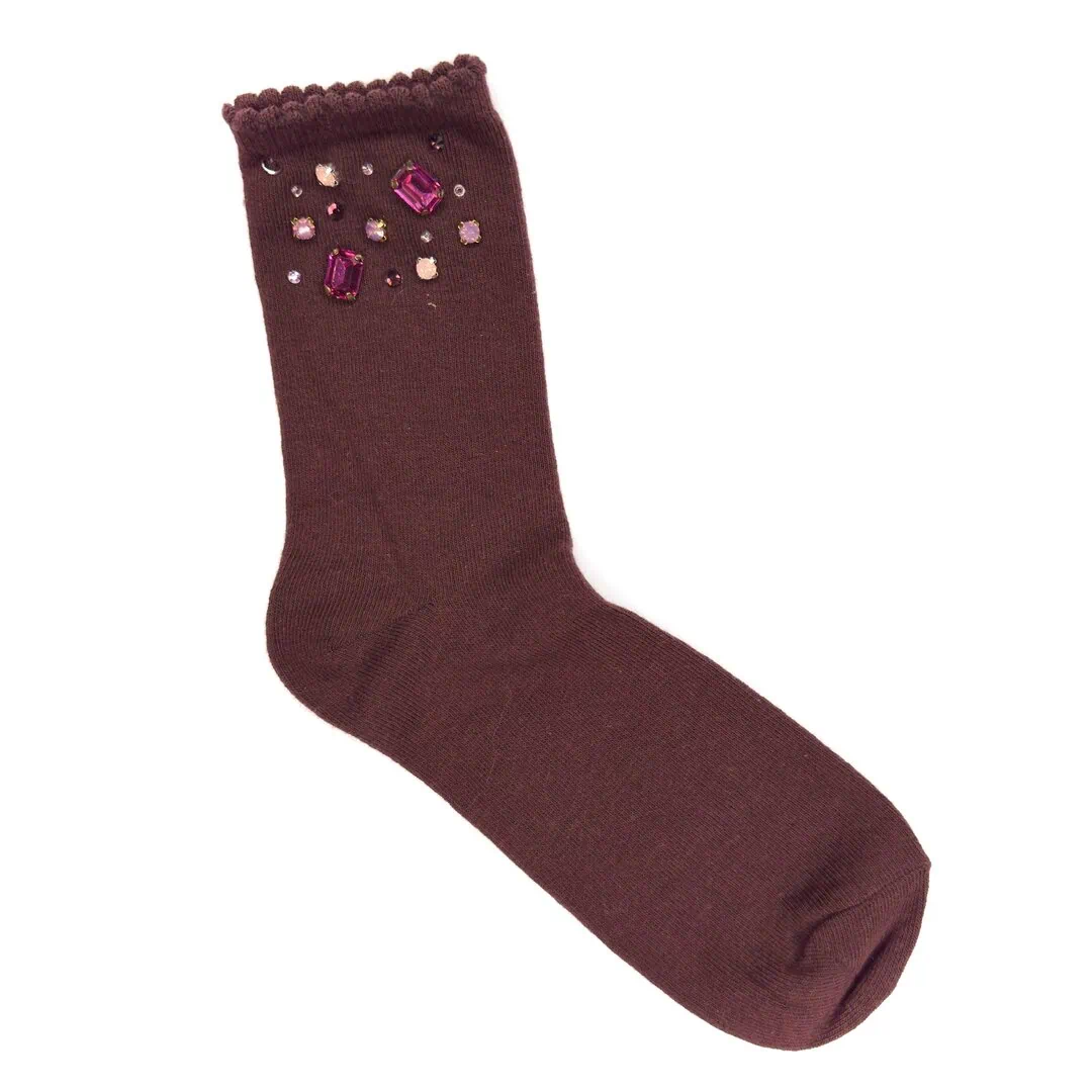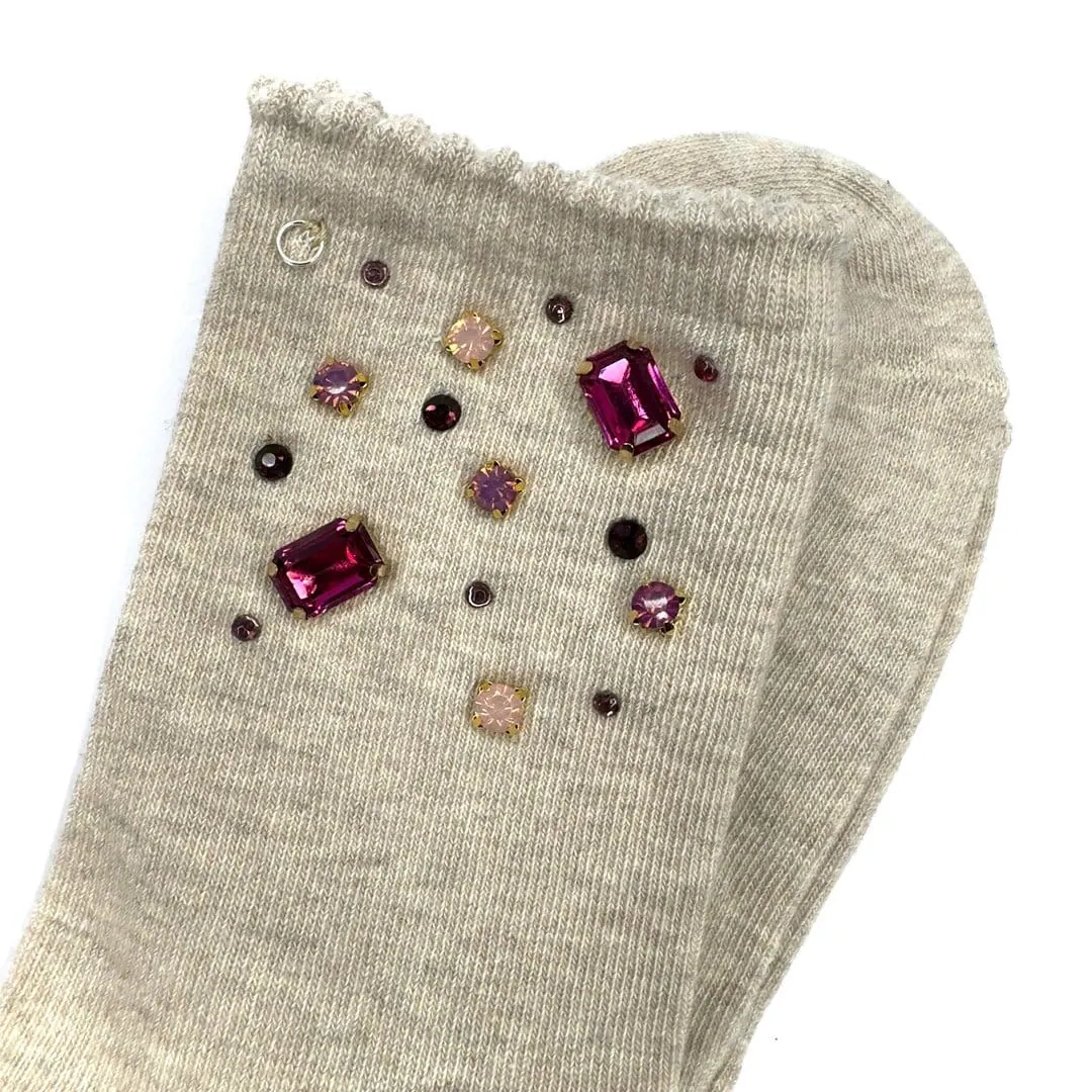 Calze Bordeaux pietre Burgundy e vinaccia su base color nude o in tono con bordatura che nn stringe con applicazioni di pietre con finish satinato brillante e strass interamente realizzate a mano, in tono ognuno è un piccolo pezzo unico.