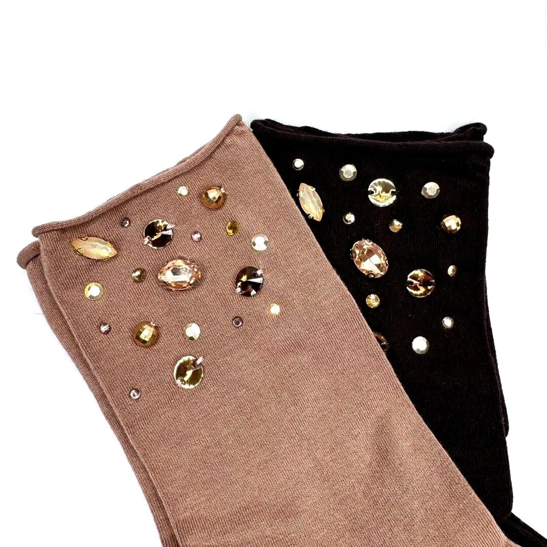 Calzini di cashmere con pietre gioiello su base in cotone e cashmere disponibile in varie nuances  con bordatura che nn stringe con applicazioni di pietre e strass, micro borchie interamente realizzate a mano, in tono ognuno è un piccolo pezzo unico.