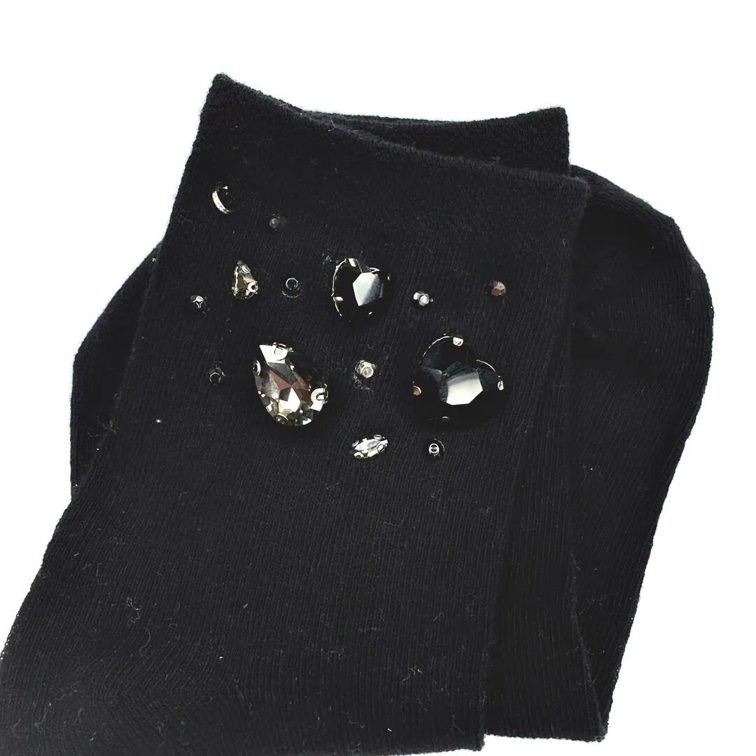 Calzini donna fantasia pietre antracite con applicazioni realizzate interamente a mano con perle, pietre e strass.