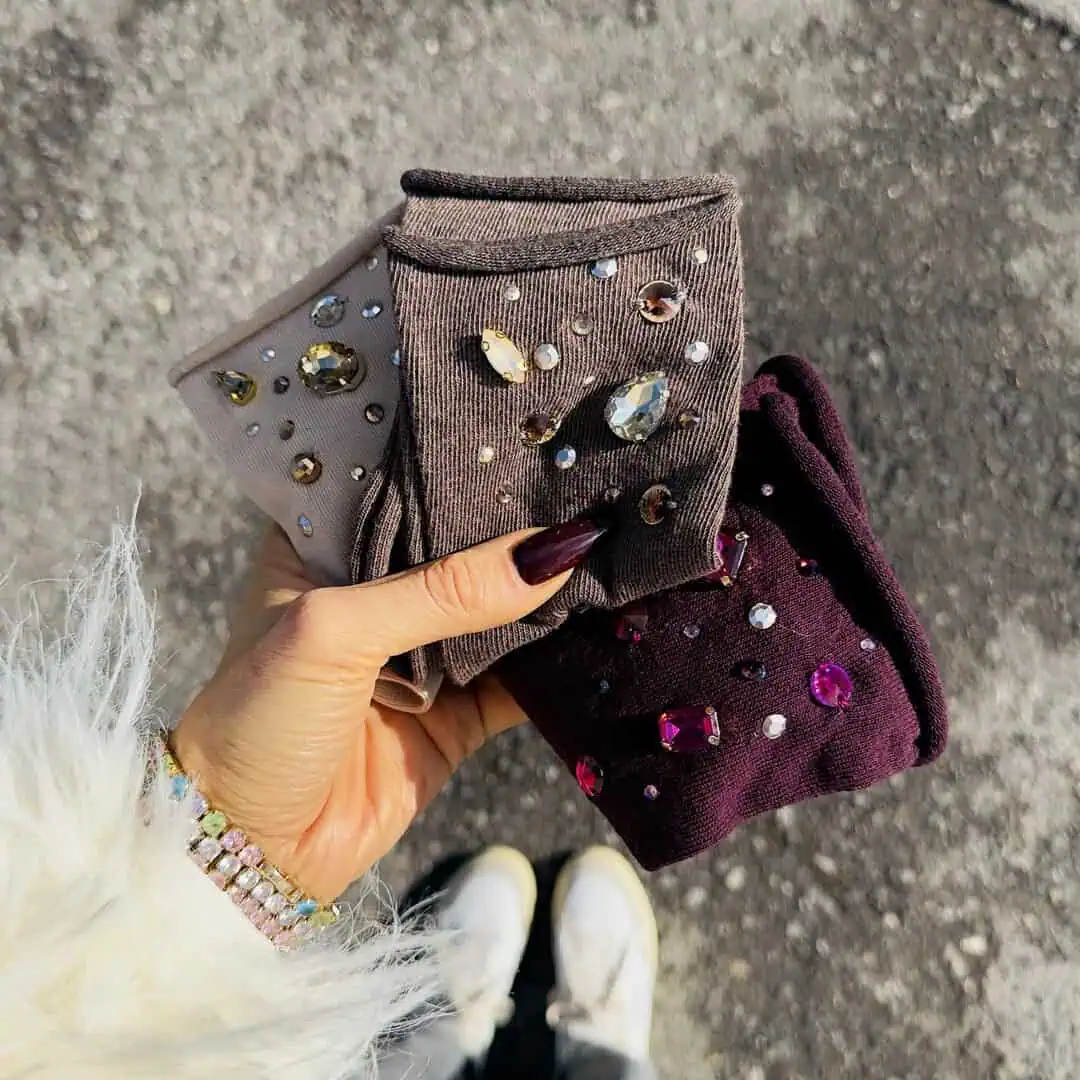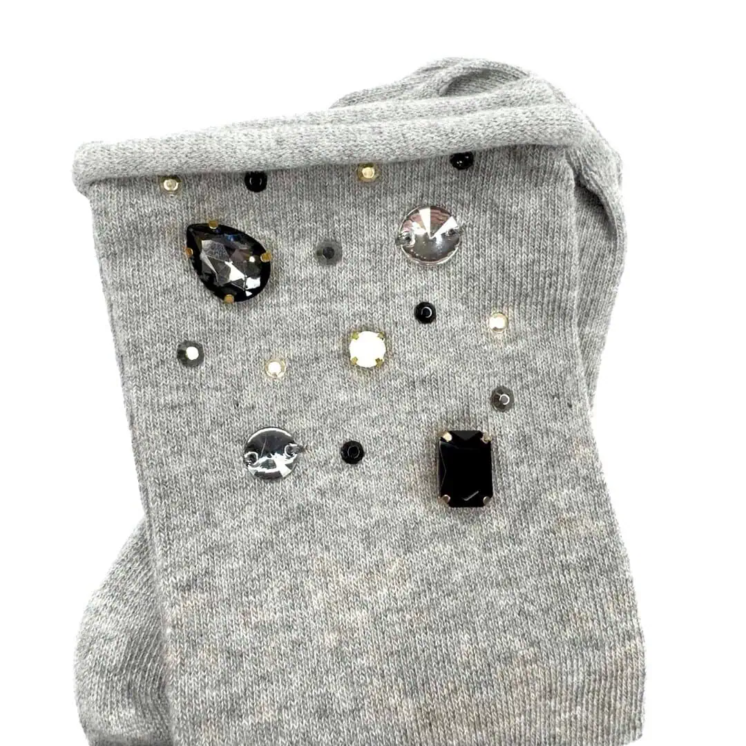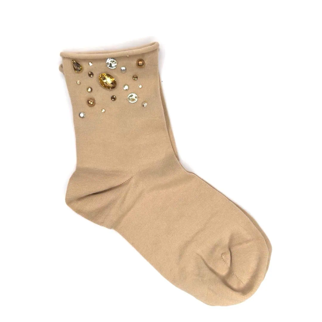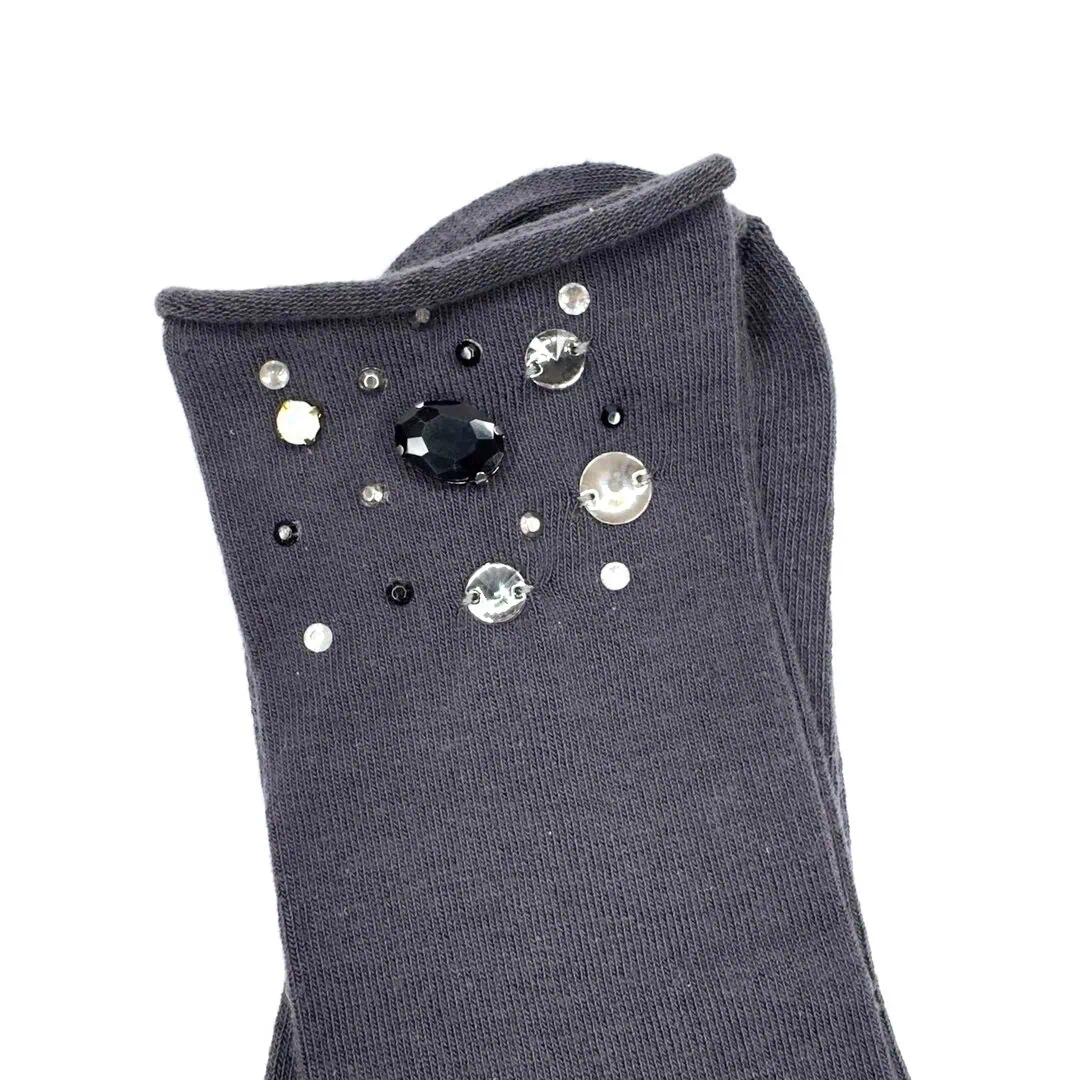 Calzini donna fantasia pietre in vari colori con applicazioni realizzate interamente a mano con perle, pietre e strass.