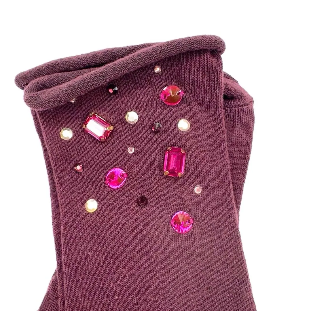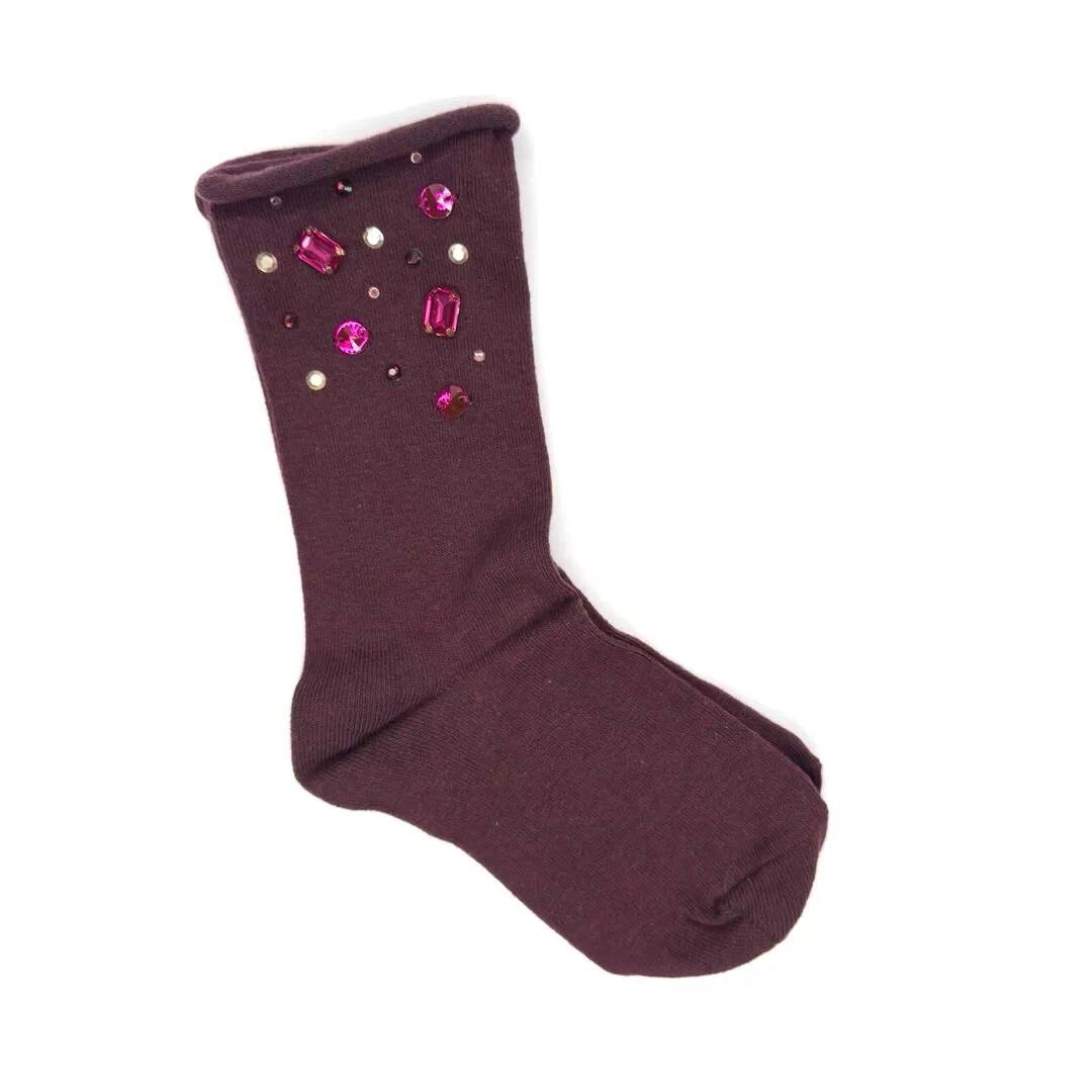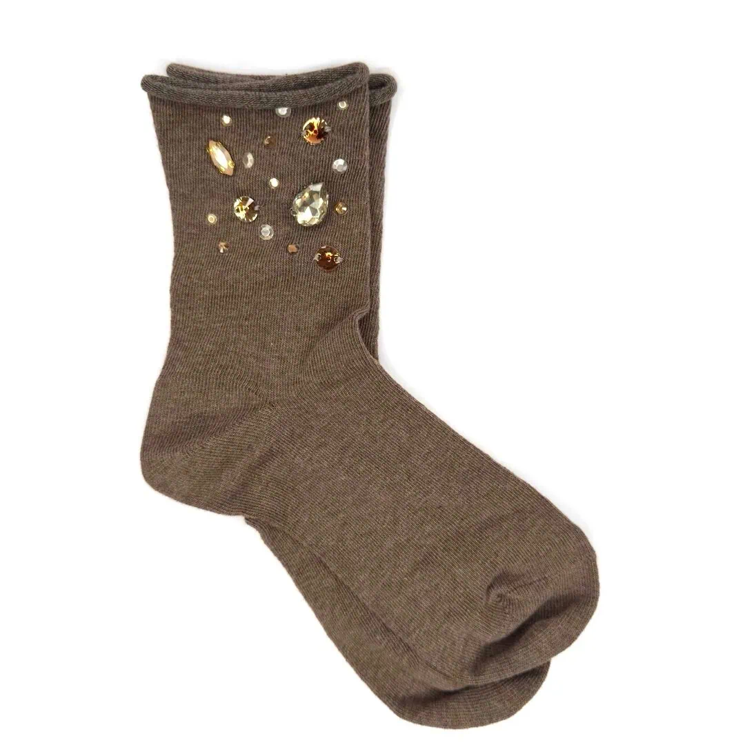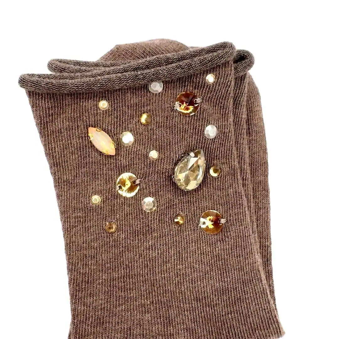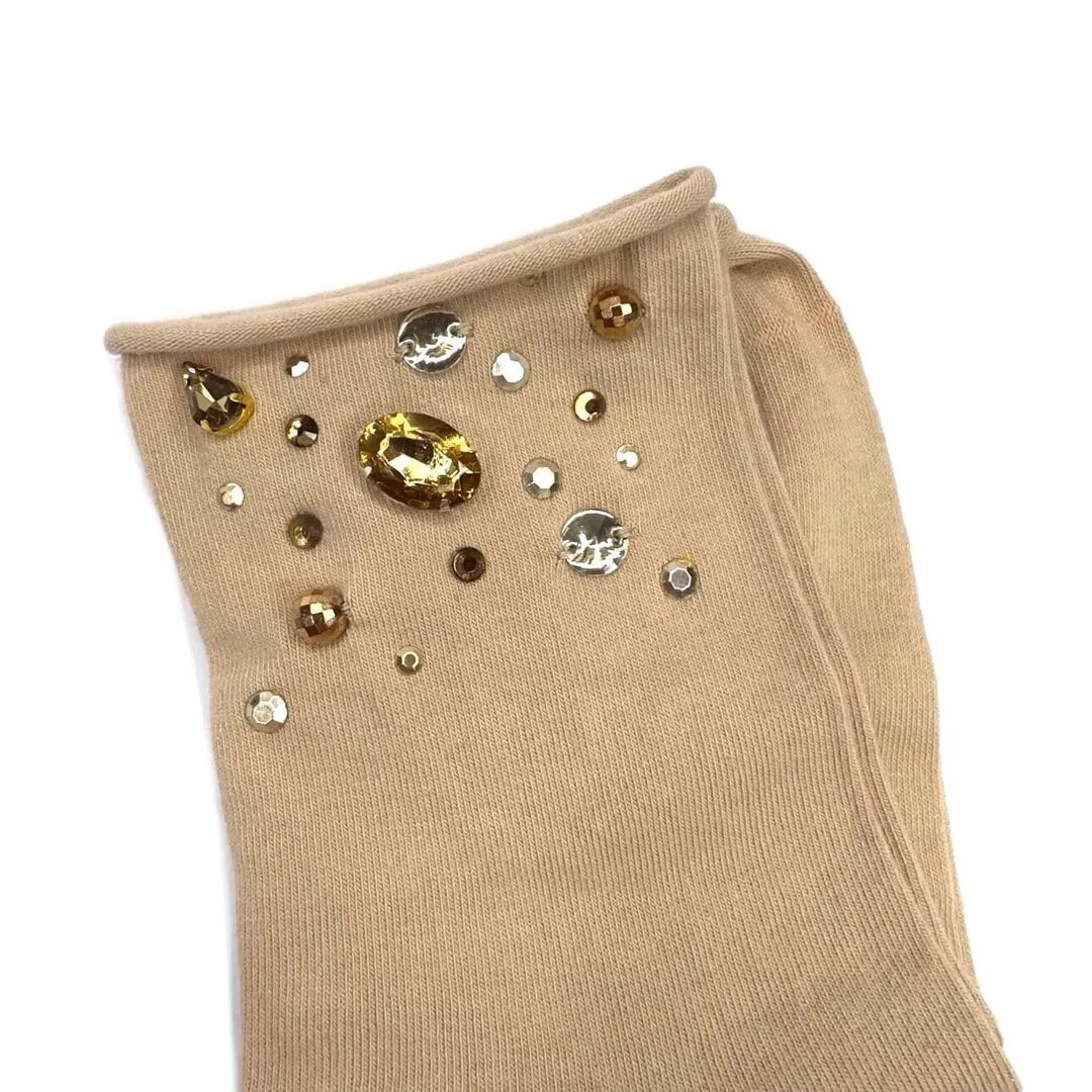 Calzini donna fantasia pietre in vari colori con applicazioni realizzate interamente a mano con perle, pietre e strass.