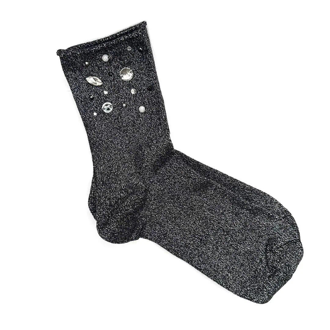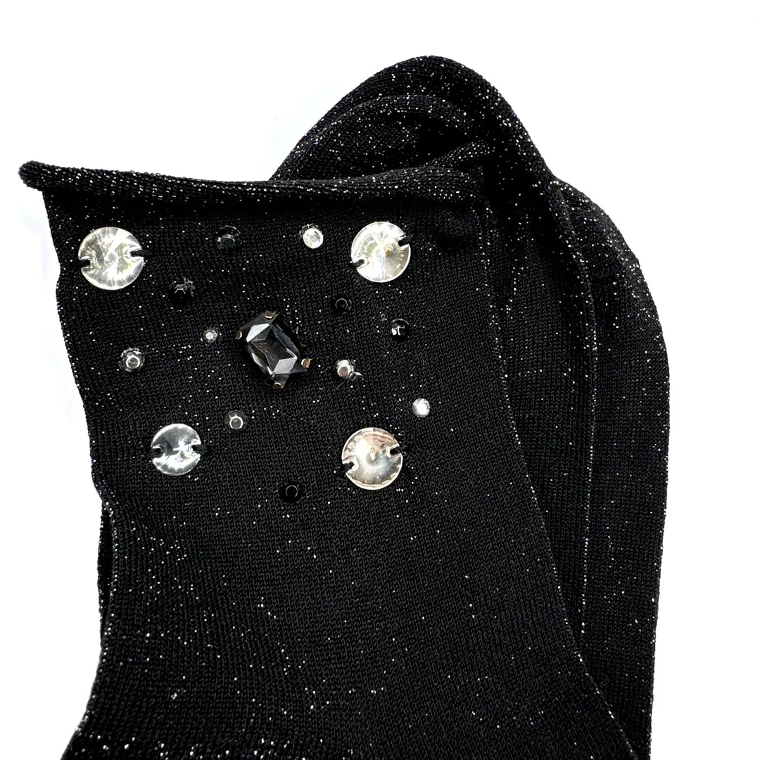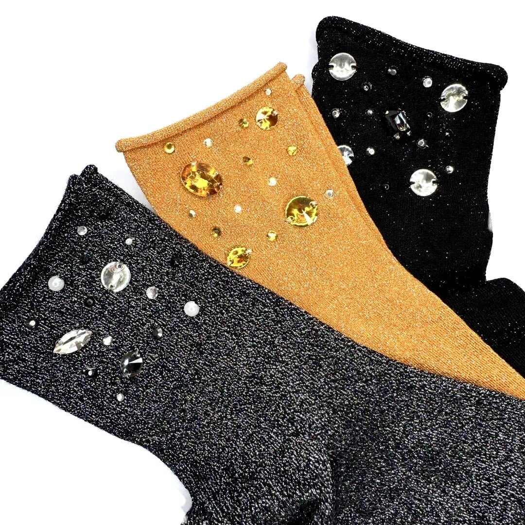 Calzini Glitter con applicazioni di pietre e strass interamente realizzate a mano, ognuno è un piccolo pezzo unico.