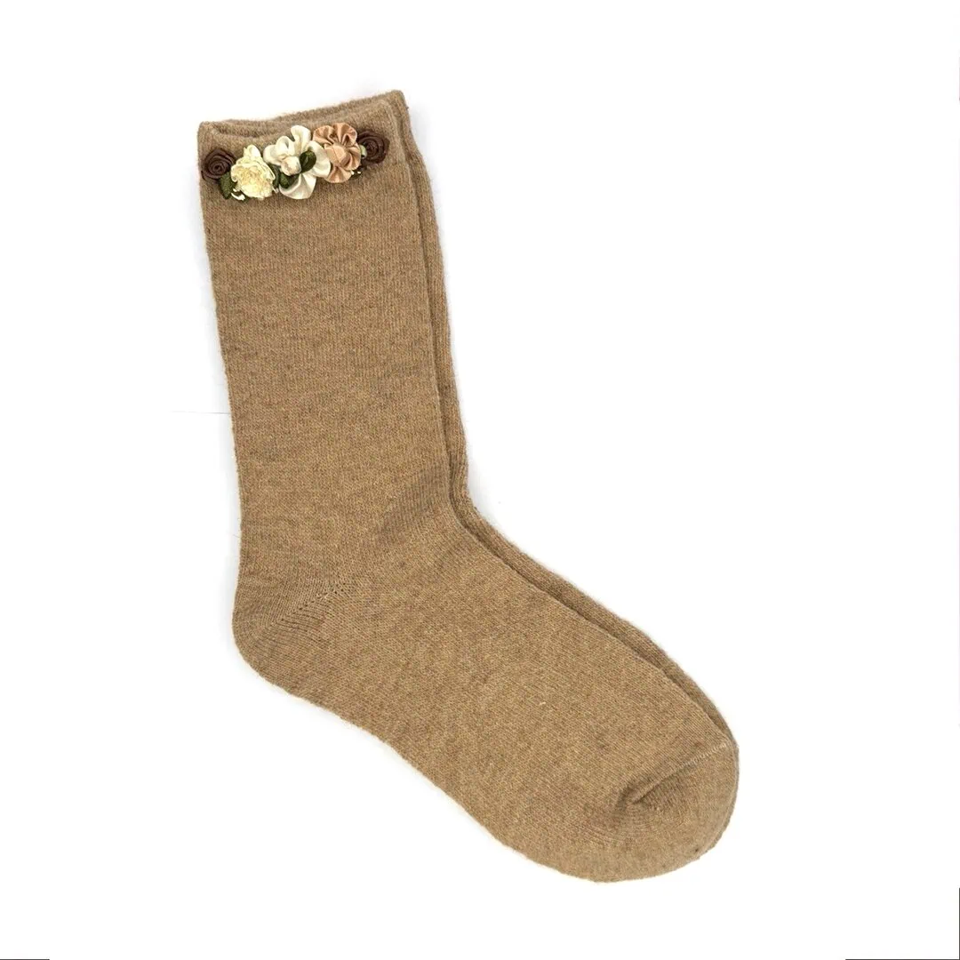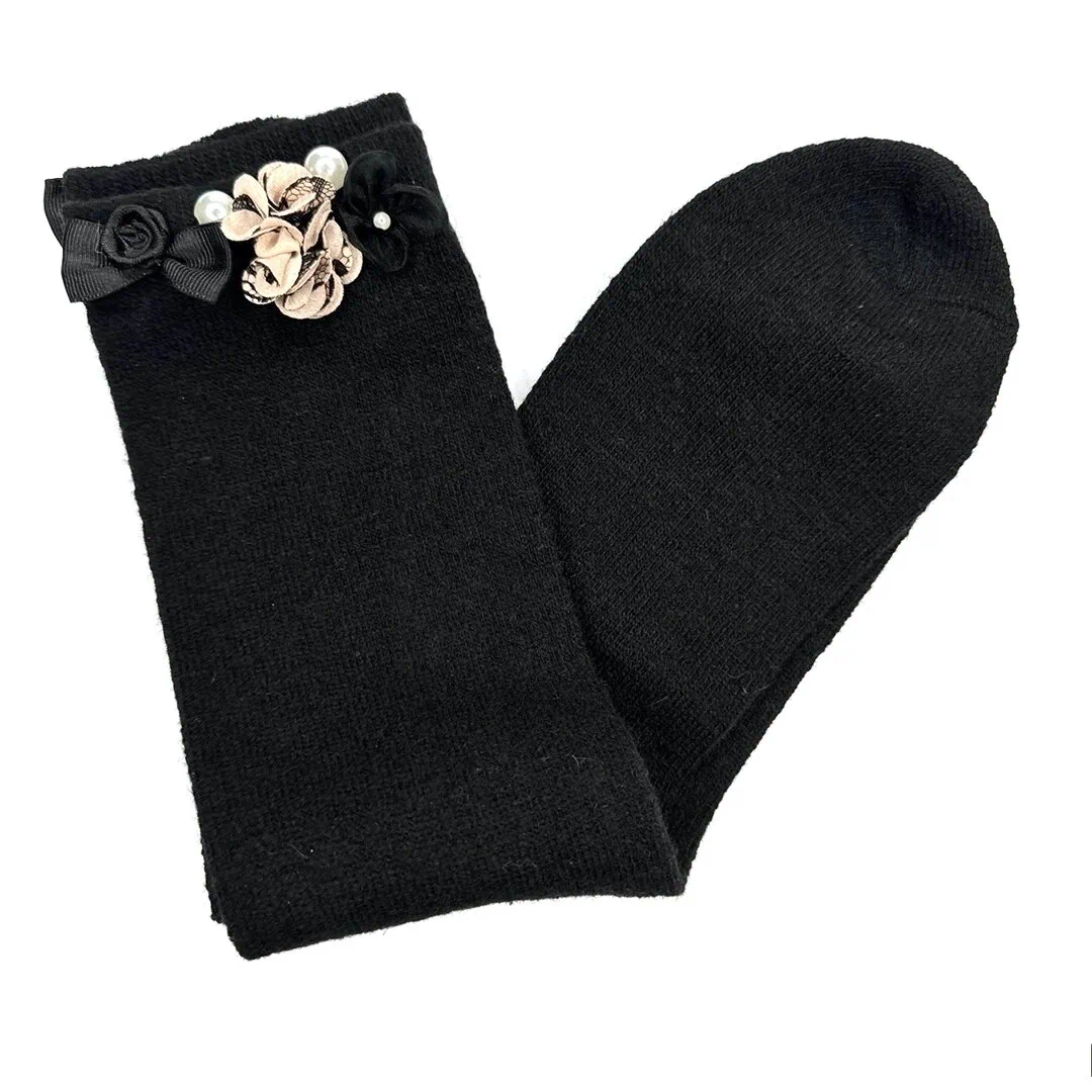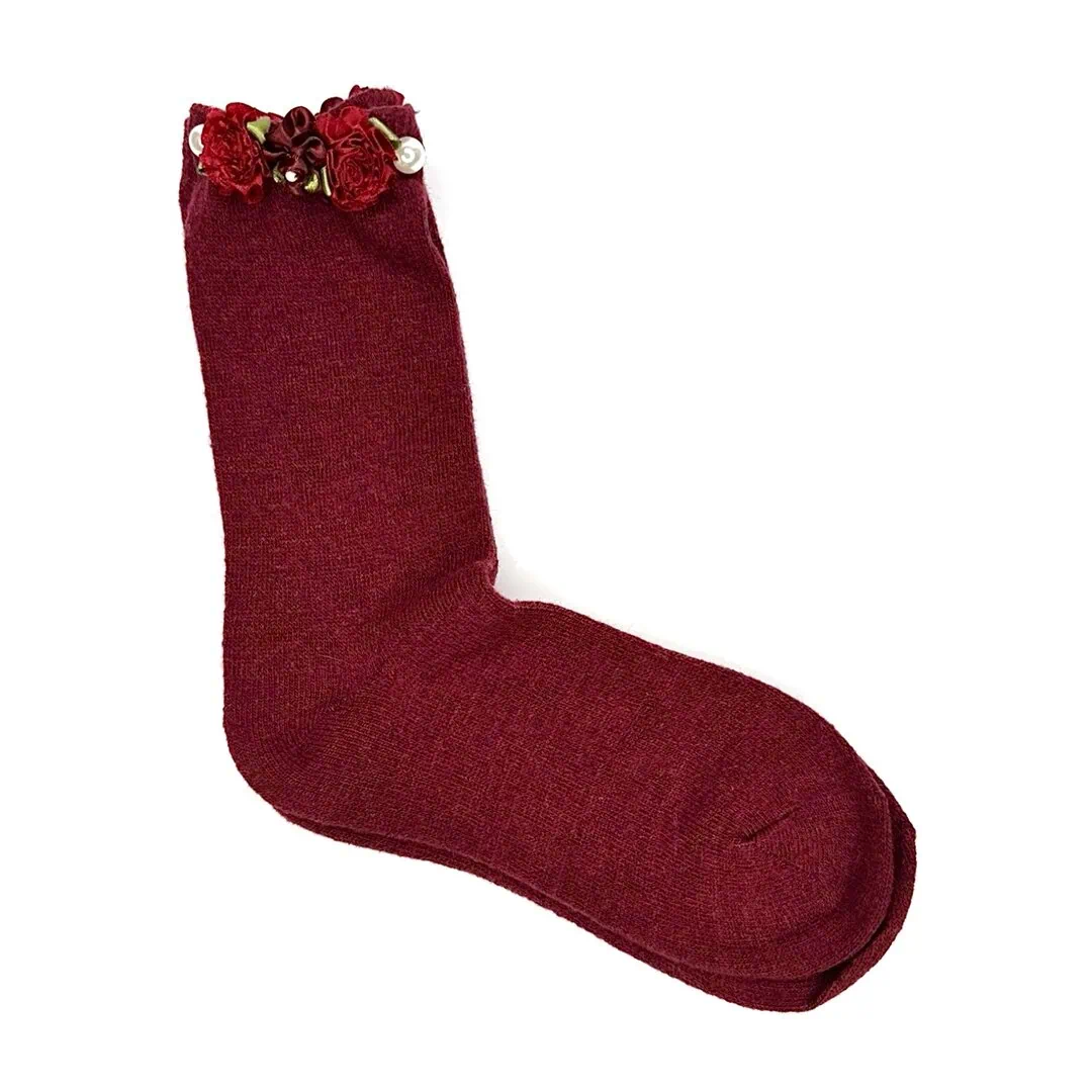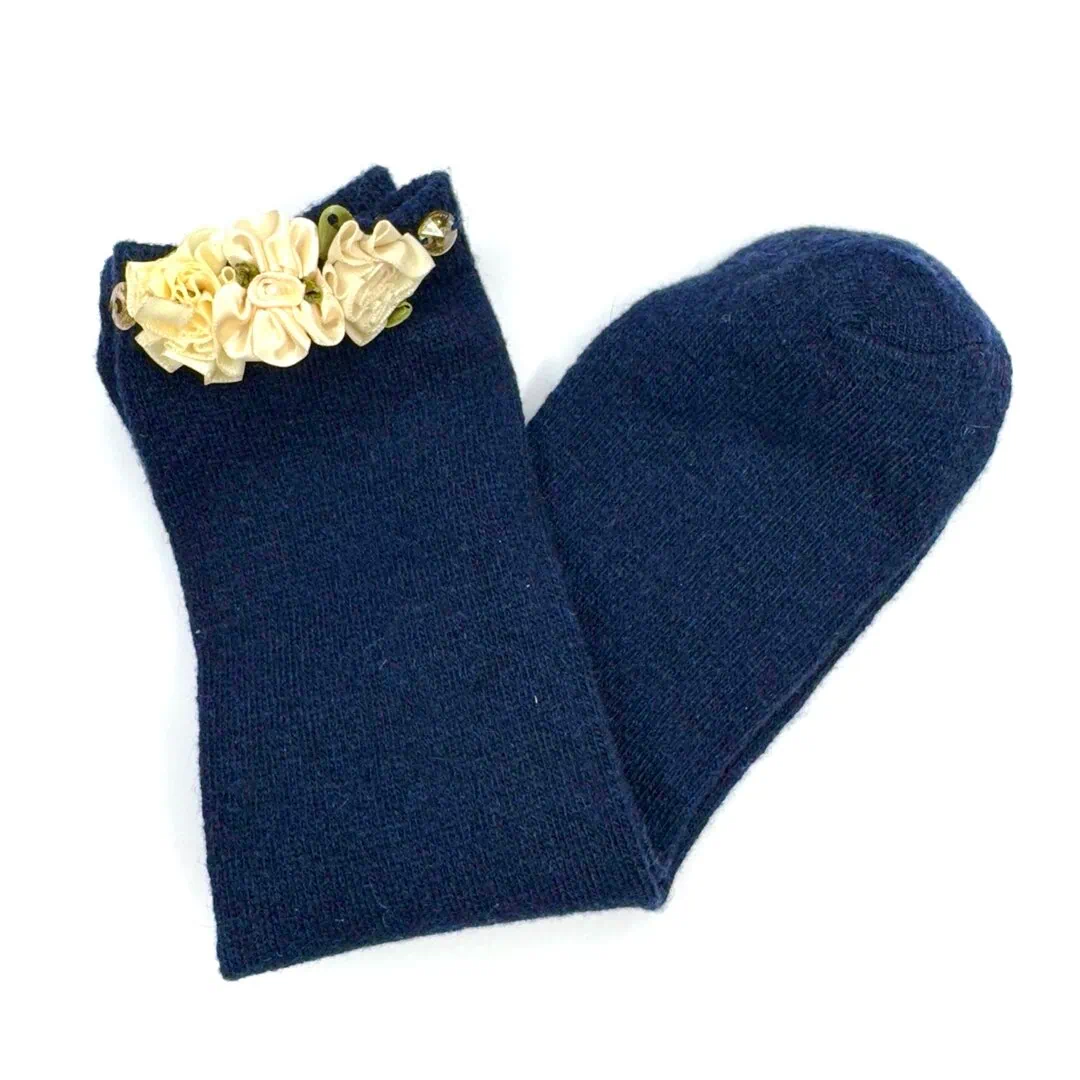 Calzini in lana con applicazioni realizzate interamente a mano con pietre in vetro cristallo e strass e fiori.
