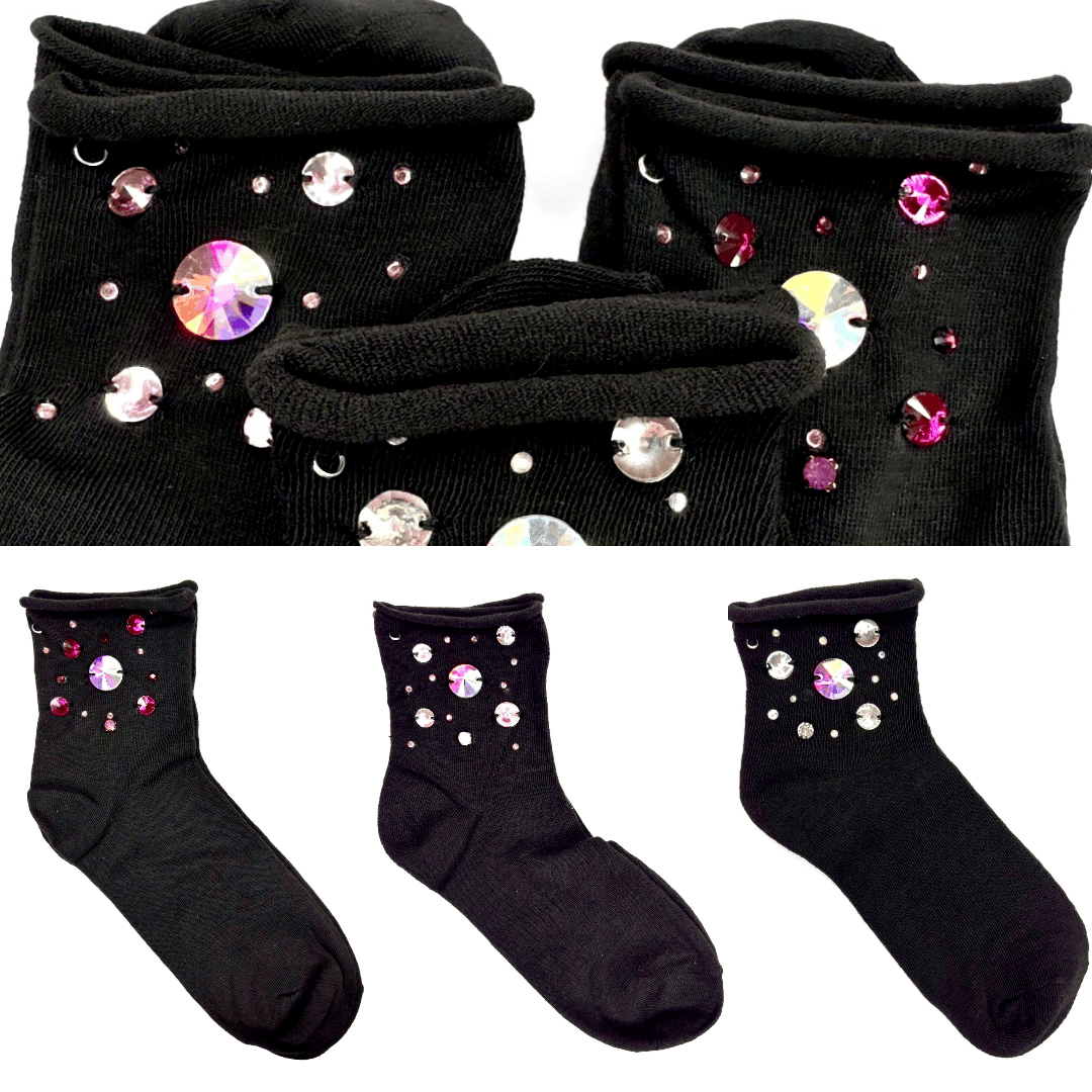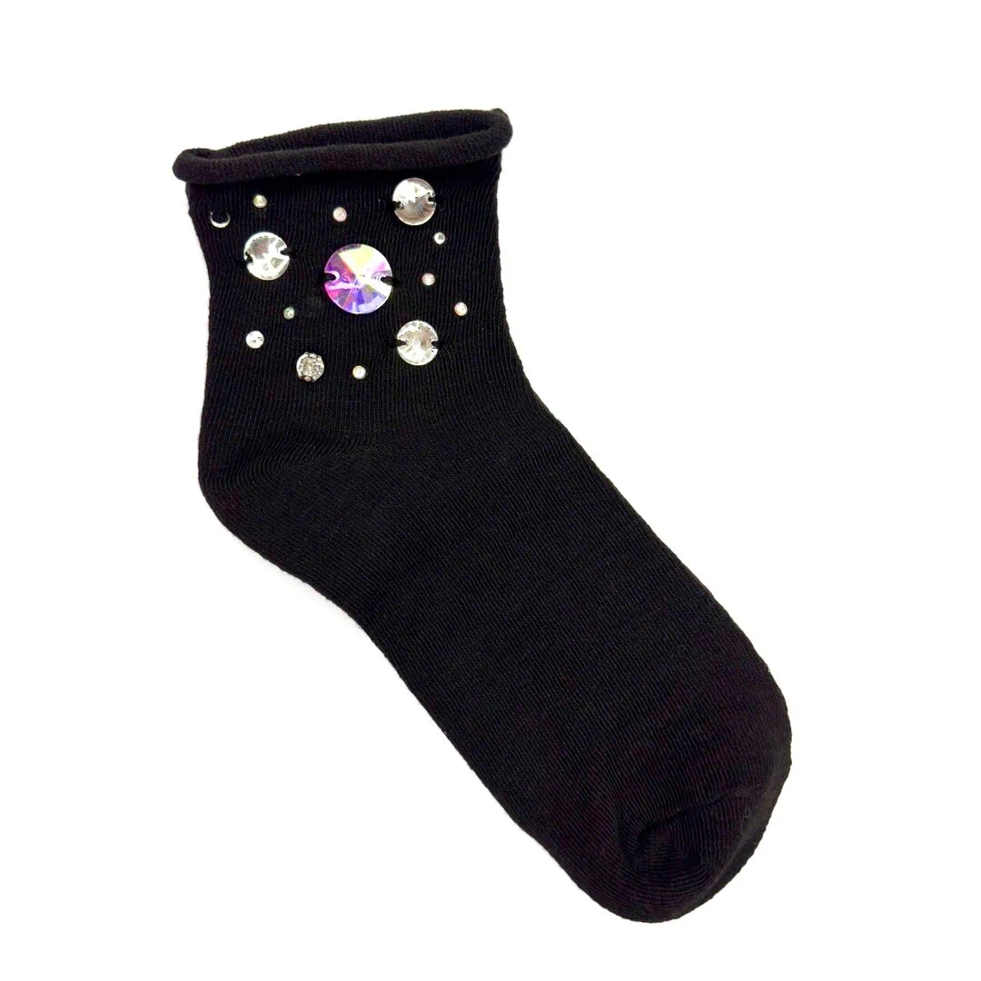Calzini neri con pietre in vetro cristallo come applicazioni realizzate interamente a mano con .