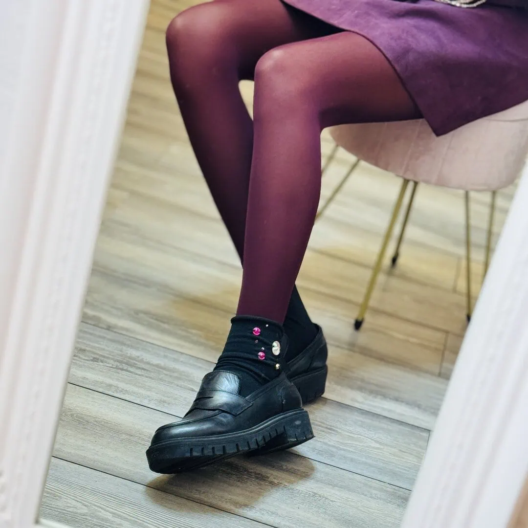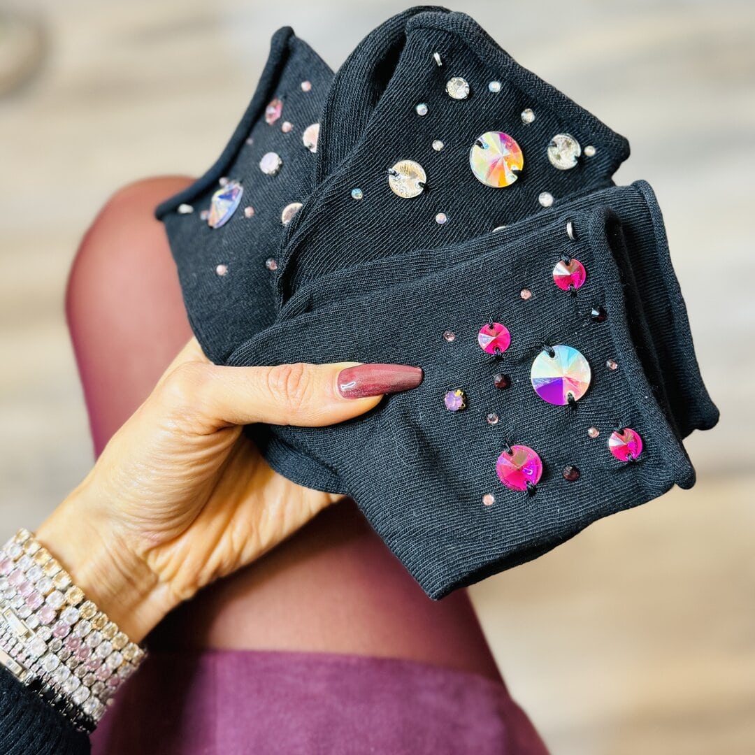 Calzini neri con pietre in vetro cristallo come applicazioni realizzate interamente a mano con .