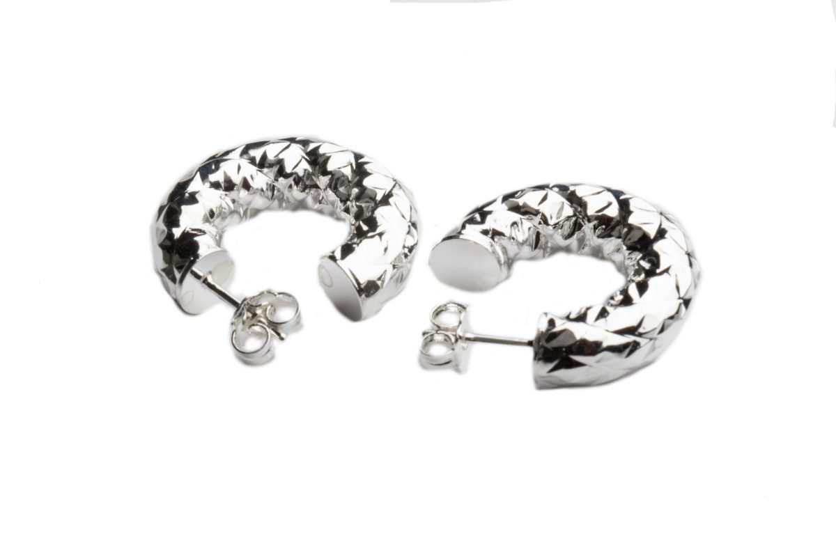 - Orecchini a campanella con lavorazione martellata, placcatura in argento.