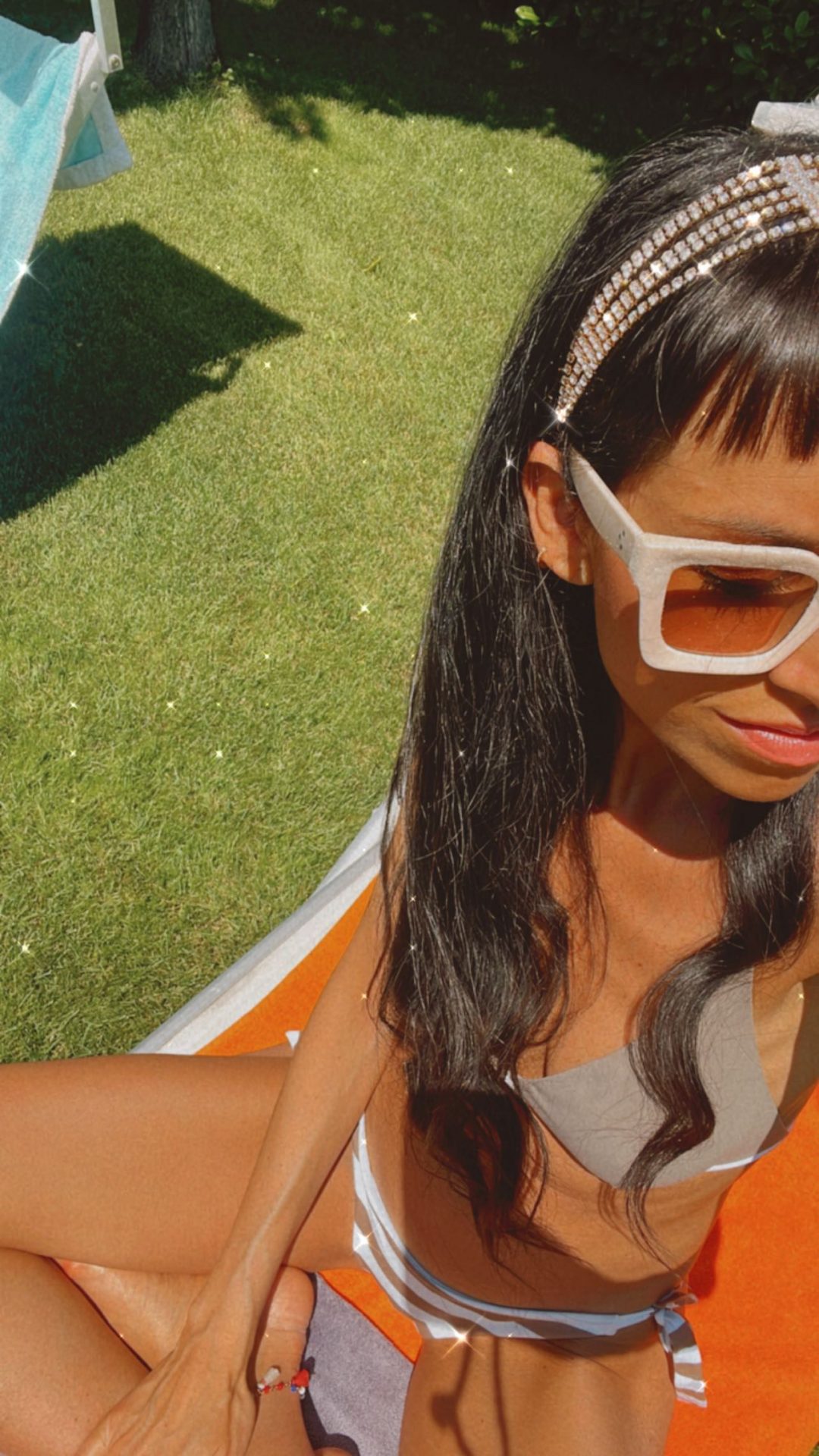 - Cerchietto realizzato con catene di strass effetto tennis, con elastico dietro.