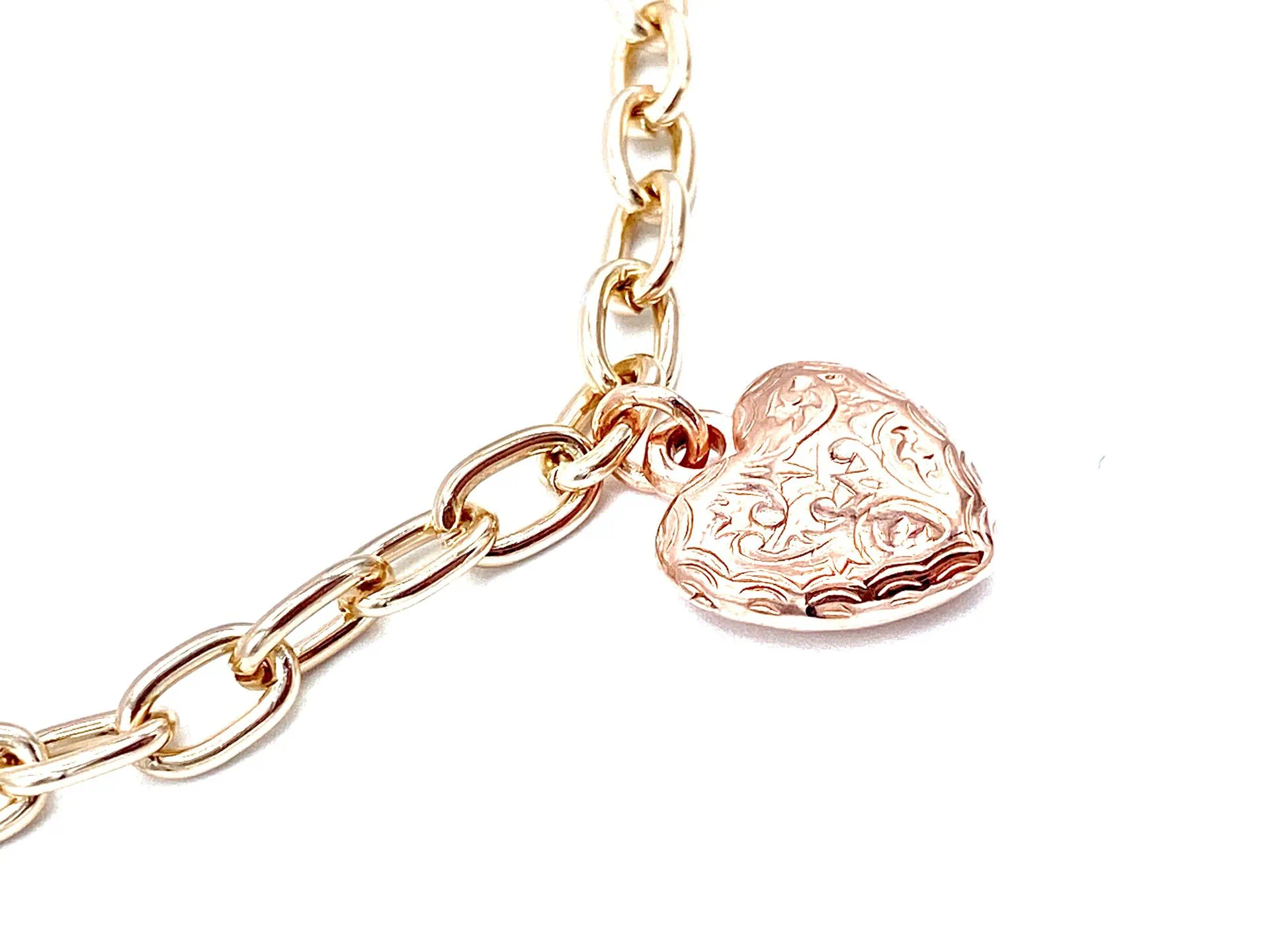Ciondolo a forma di cuore bombato e lavorato dal gusto Vintage.