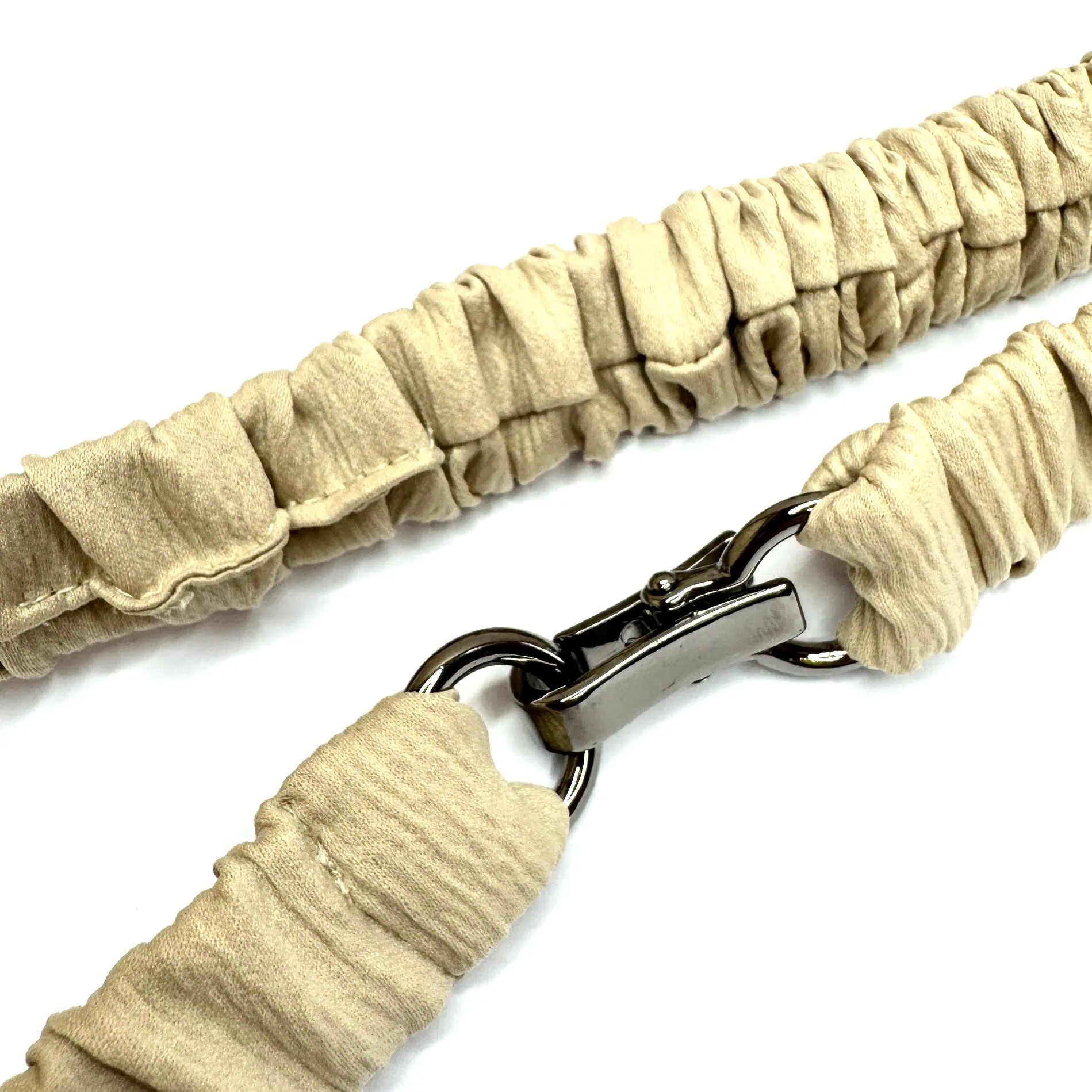 Cintura elasticizzata con fibbia cucita e realizzata interamente a mano, in tessuti pregiati come raso, garza ed in fantasie uniche ed irripetibili.