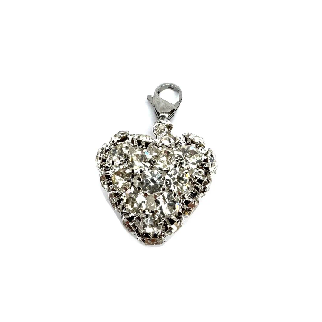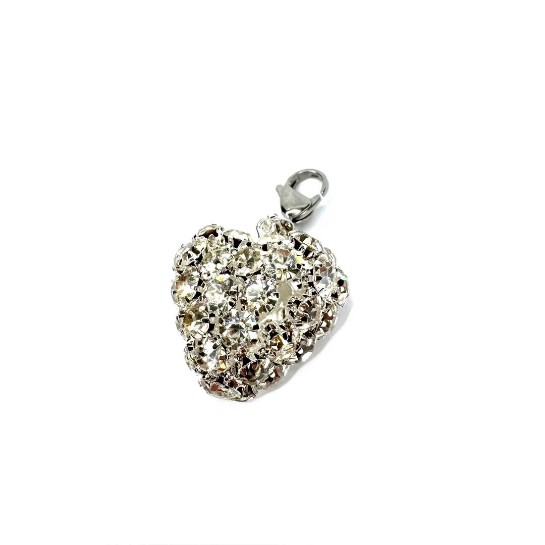 Ciondolo cuore 3d completamente ricoperto di strass incastonati.