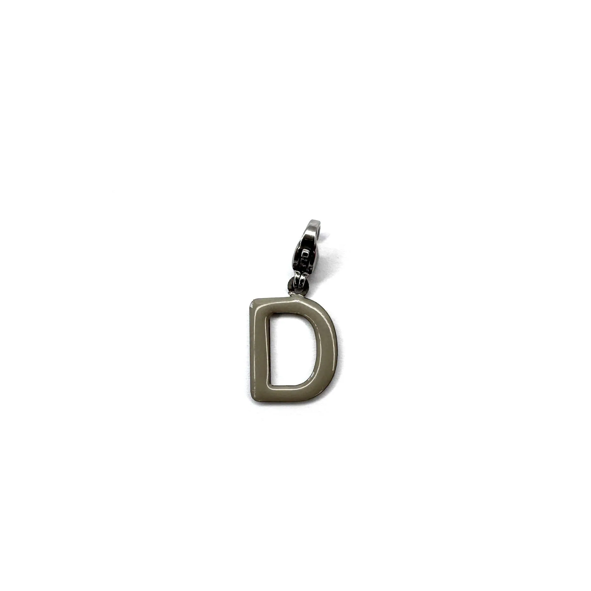 Ciondolo lettera inciso e tagliato a laser su acciaio smaltato a mano, di 1cm x 1cm.