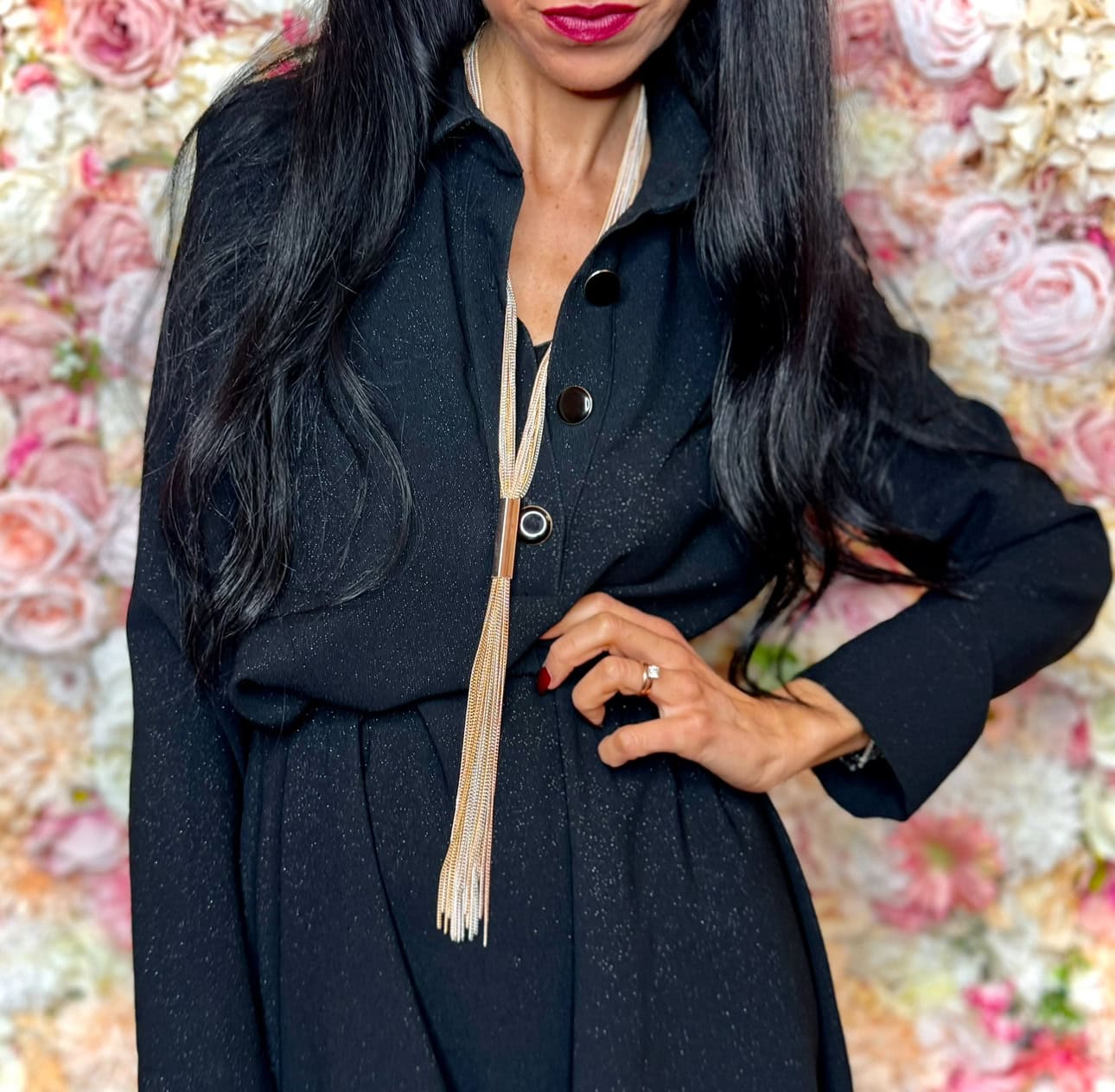 Una collana multifilo, leggerissima che si completa da sola.