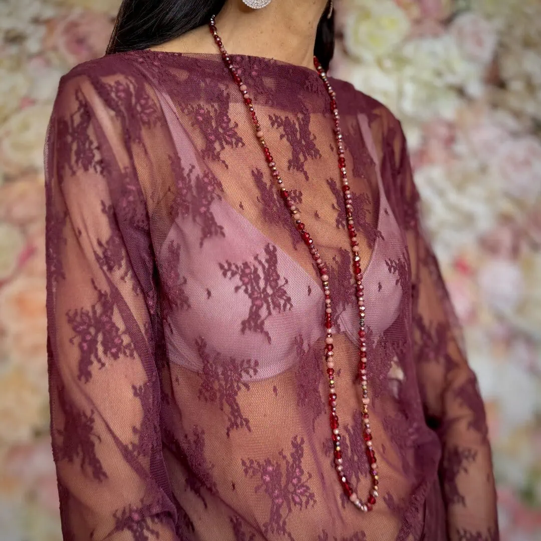 Aggiungi un tocco di stile unico al tuo look con la nostra collana bordeaux lunga, un vero must-have per chi ama le sfumature burgundy. Realizzata con corallini in vetro cristallo, ogni singola perla è infilata a mano per creare un pezzo davvero unico.