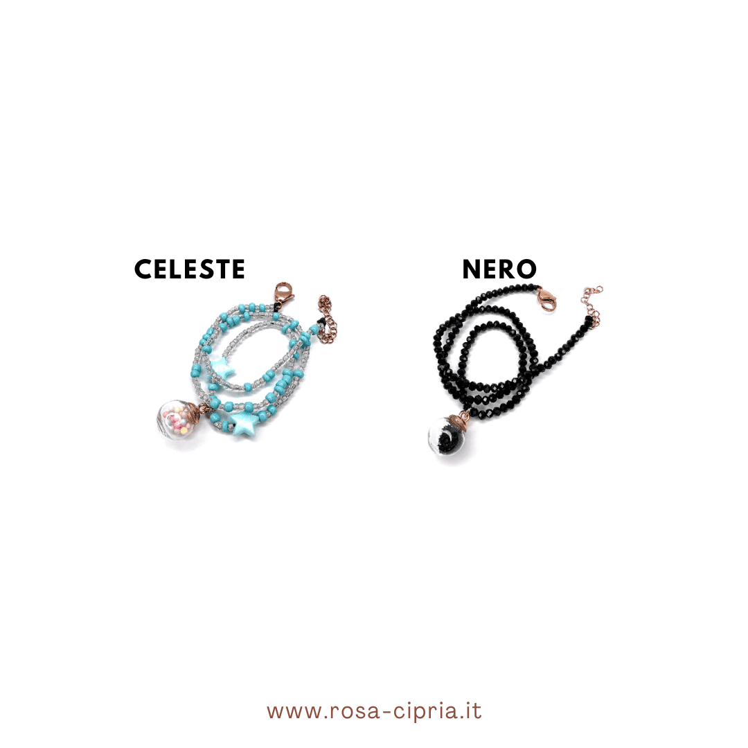 Ma il vero tocco di magia è il ciondolo: una sfera trasparente riempita di microbolle che sembrano danzare al ritmo dei vostri movimenti.