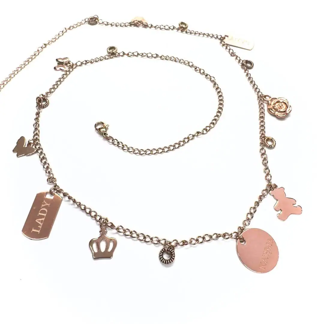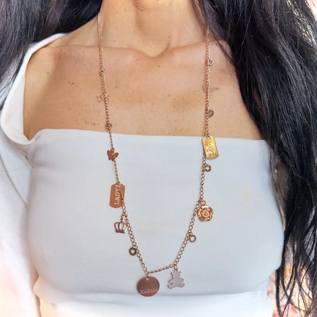 Collana Charms in catena in acciaio placcato oro rosa.
