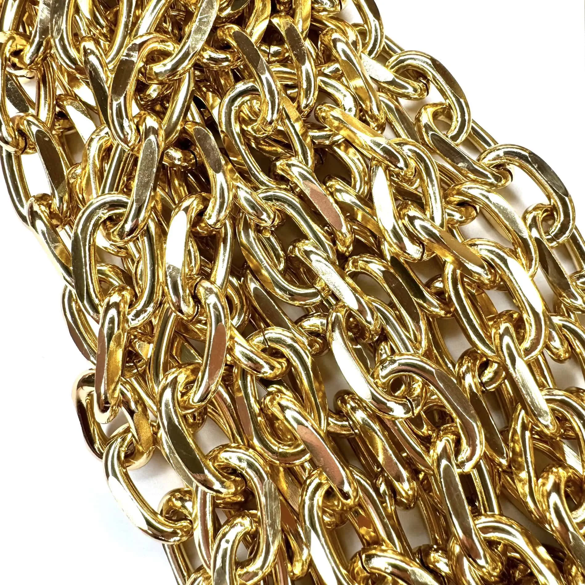Collana dorata donna realizzata con catena effetto Chunky e chiudibile lungo tutta la sua lunghezza.