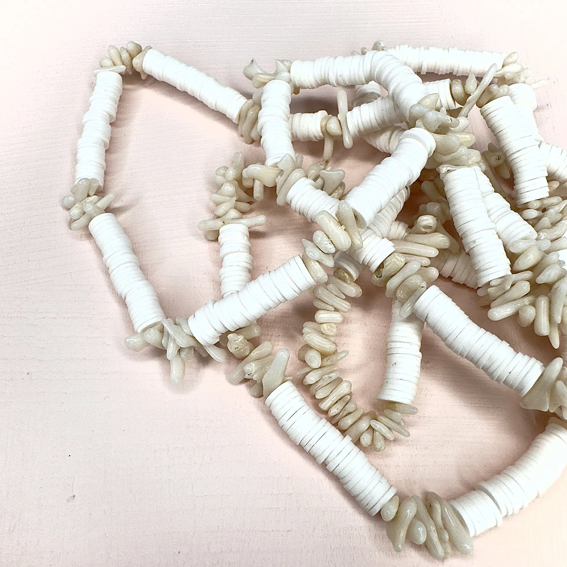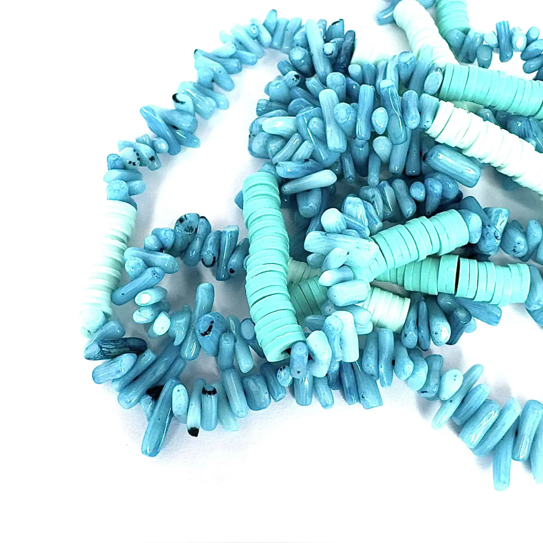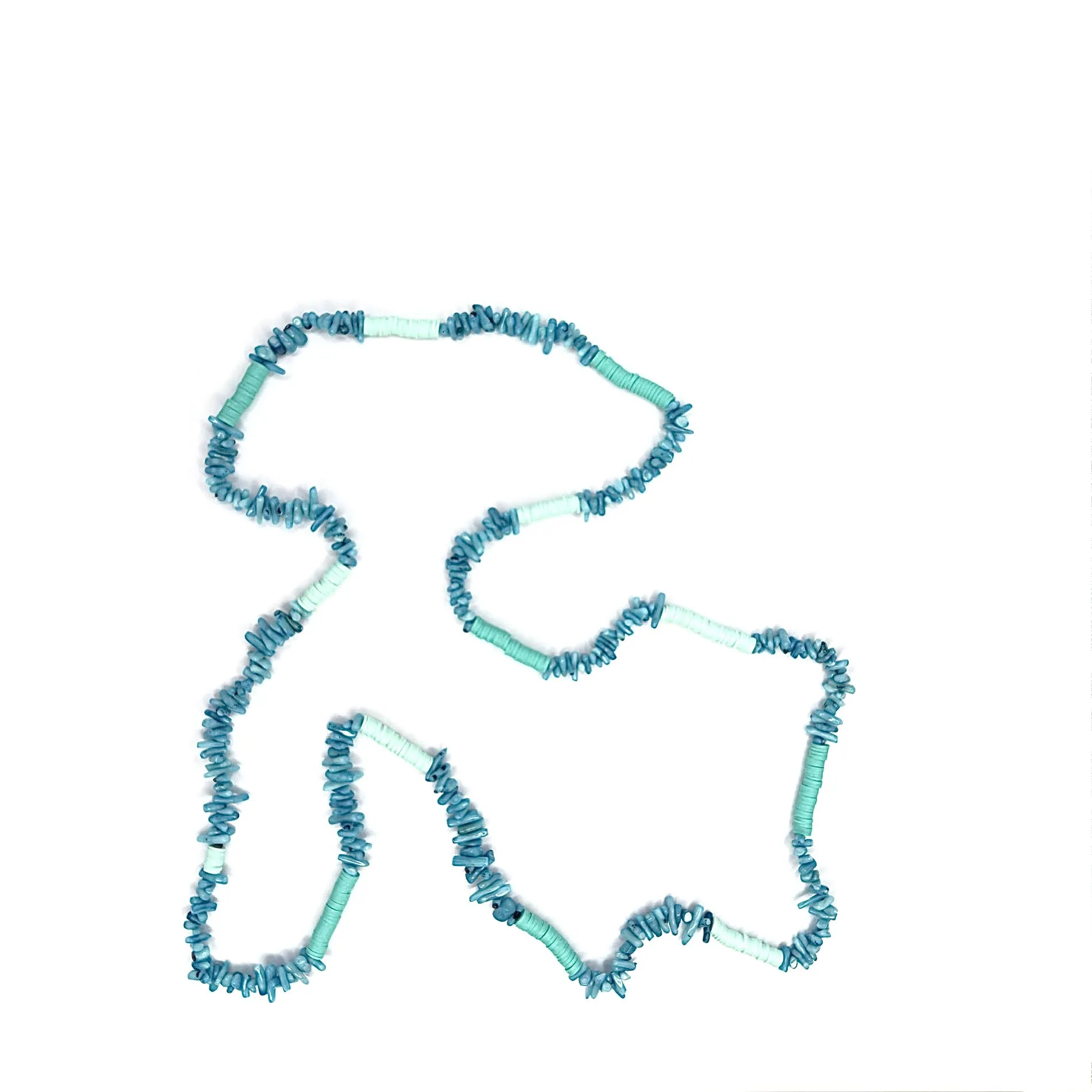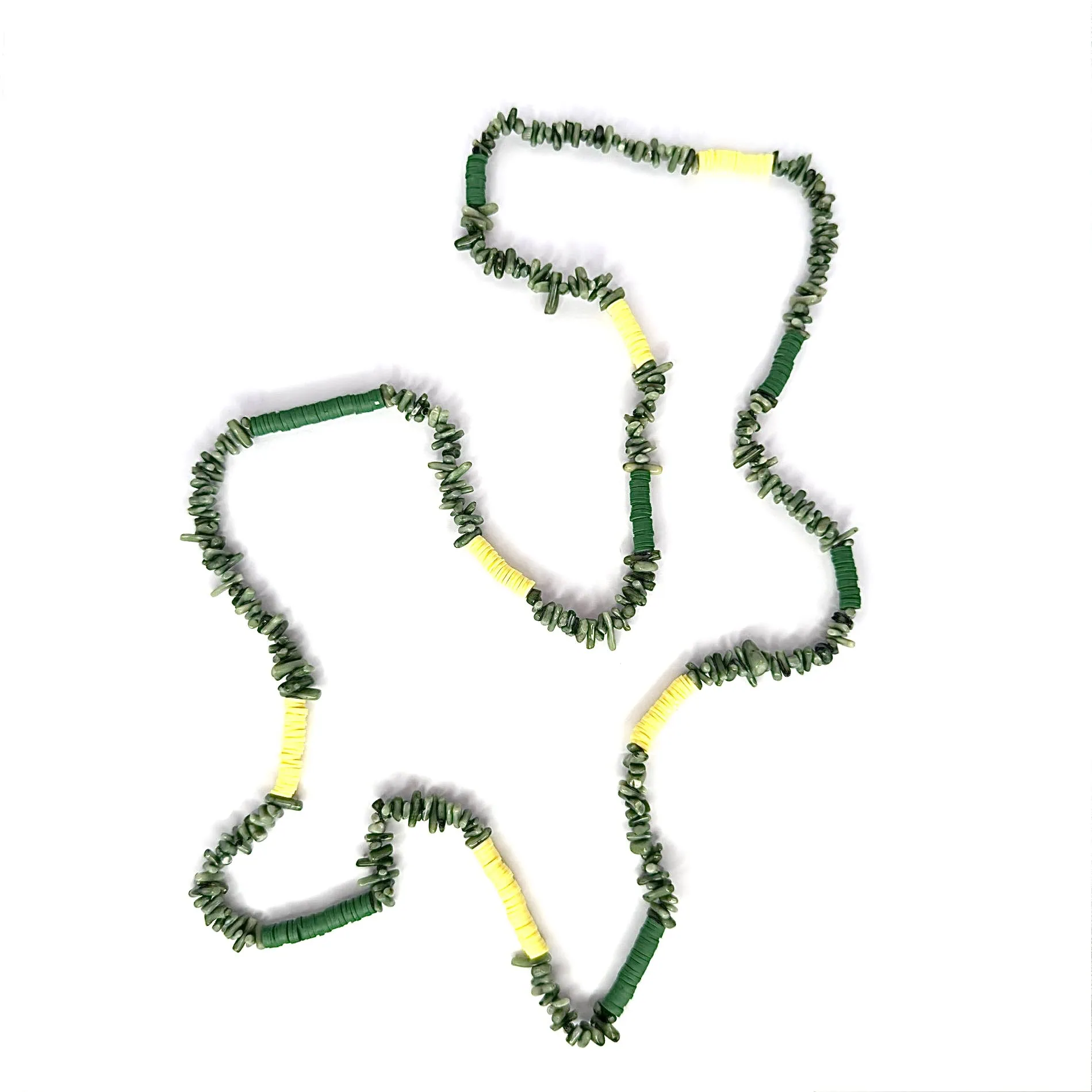 Collana estiva lunga colorata con pietre chips in corallo bambù inframezzate da rondelle sintetiche infilate a mano su filato di cotone cerato.