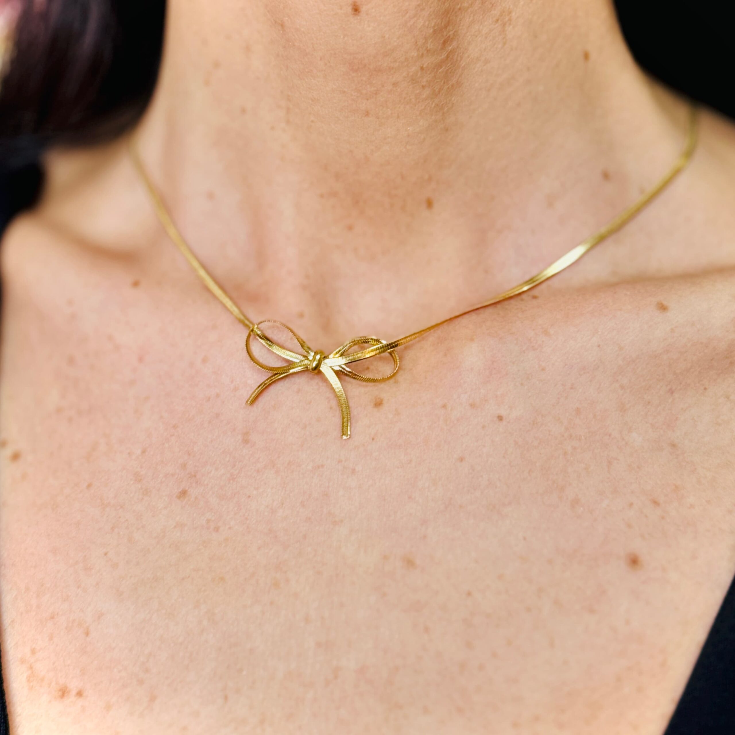 - Collana fiocco in acciaio placcato oro.