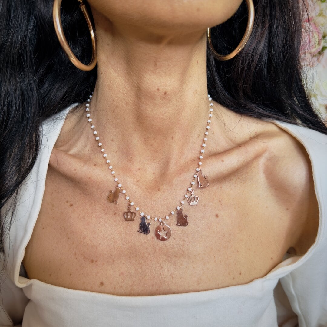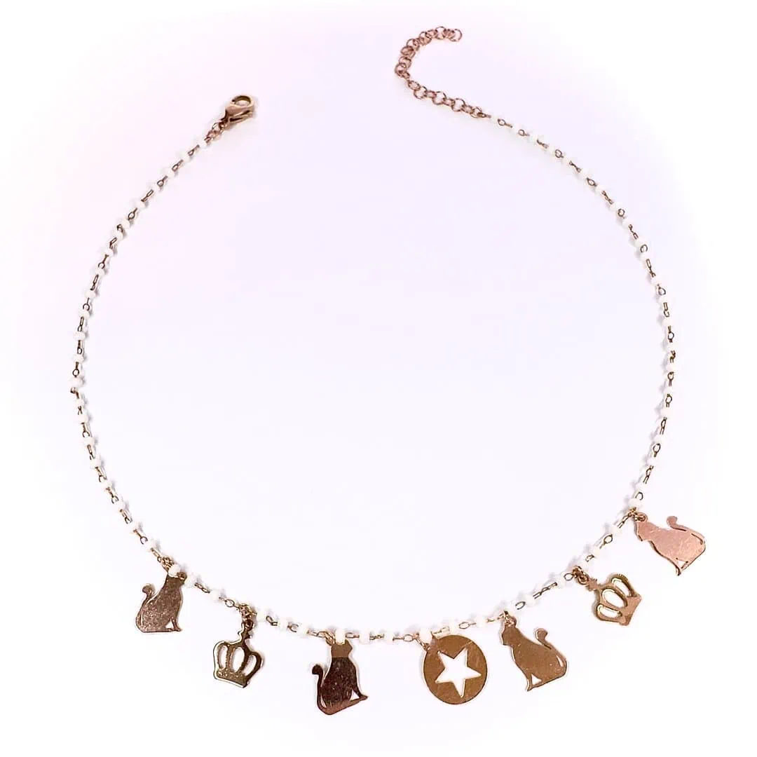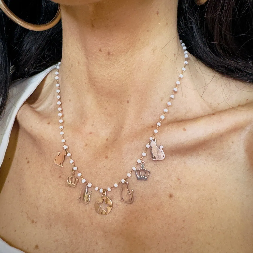 Collana gatto rosario color avorio, un gioiello unico che unisce lo stile all’amore per i nostri amici a 4 zampe