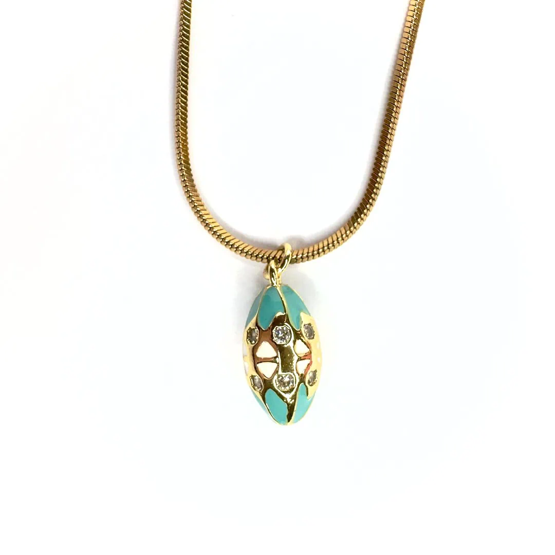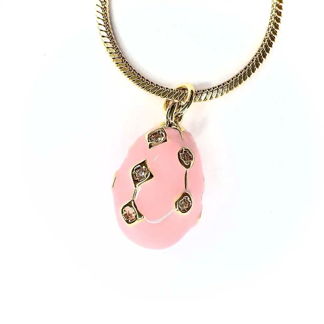 - Collana goccia a girocollo con charm a forma di goccia smaltata e decorata in diversi motivi.