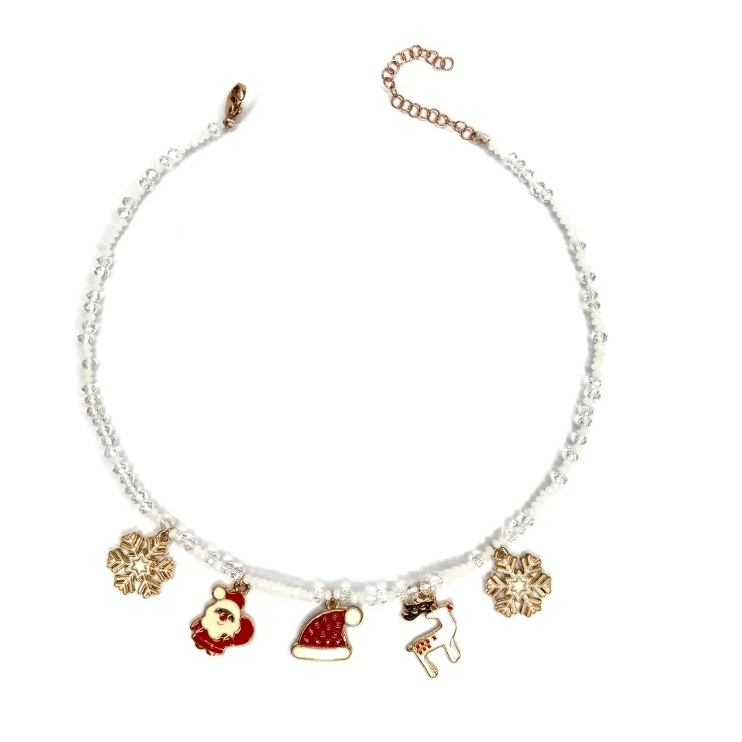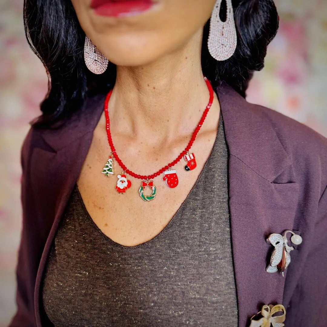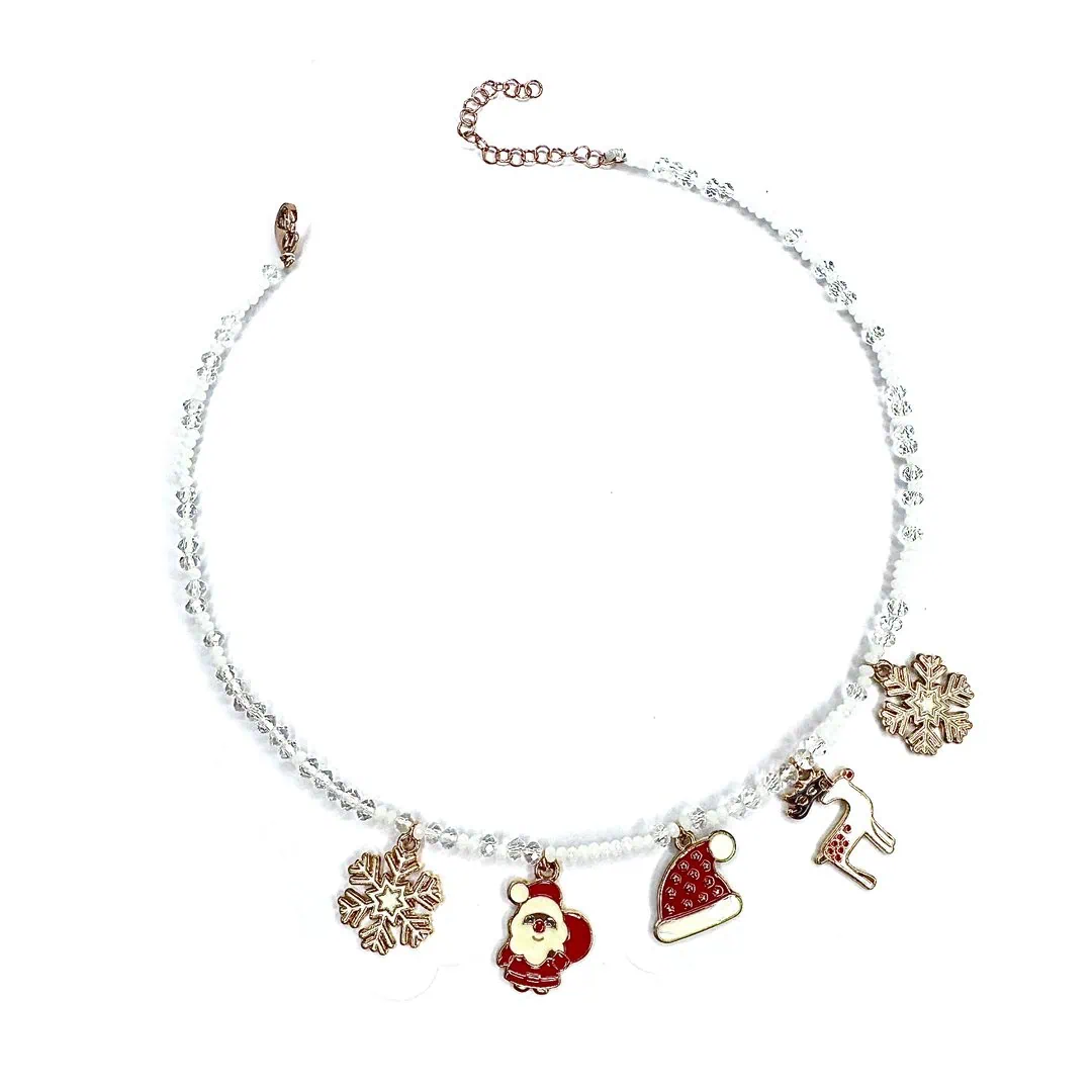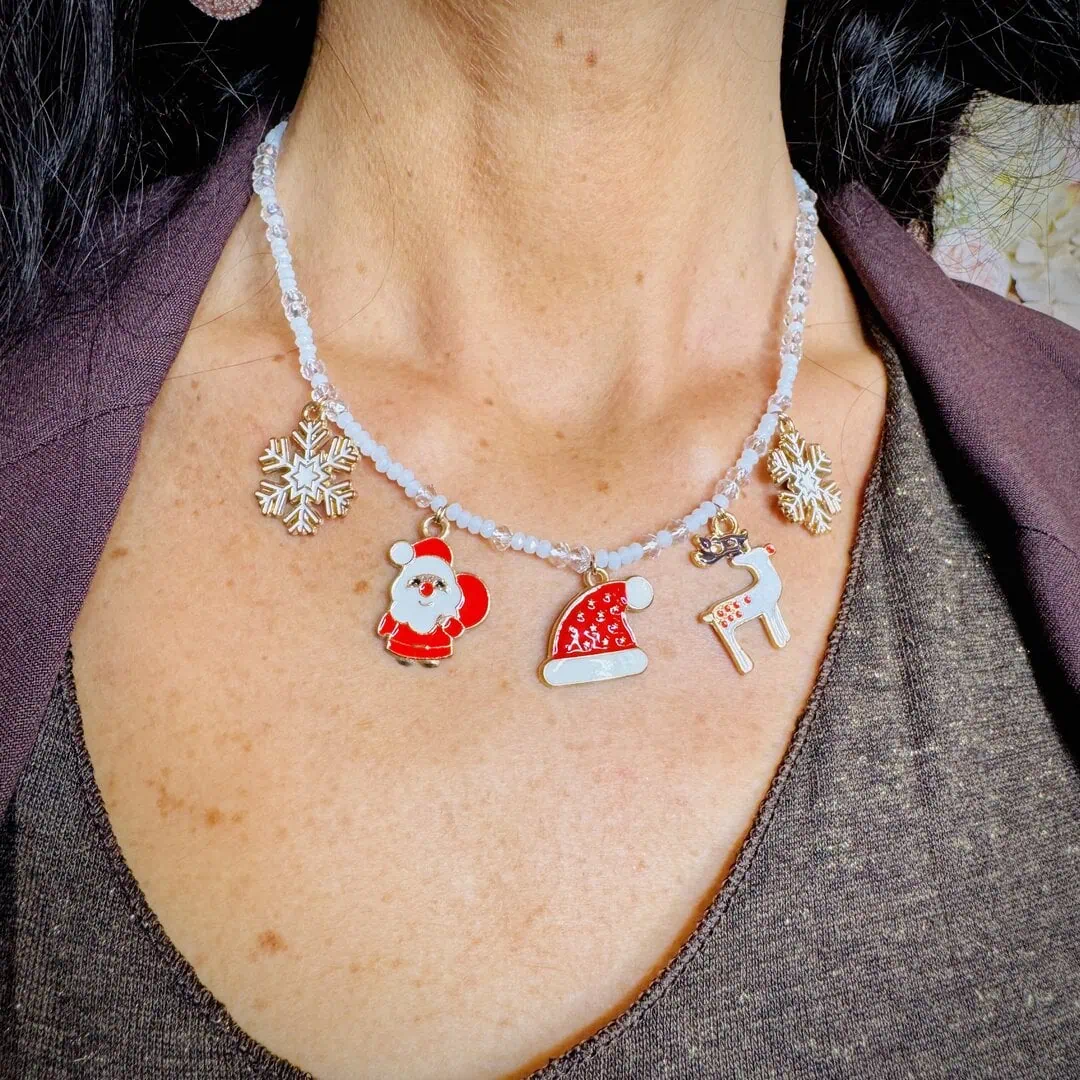 Collana natalizia realizzata con corallini in vetro cristallo colorato e charms smaltati a tema realizzata a mano.