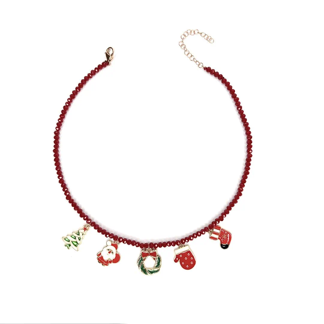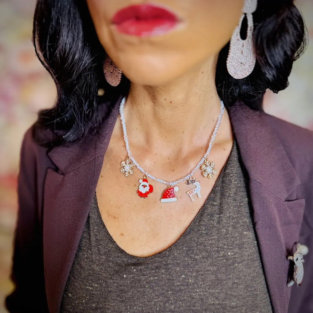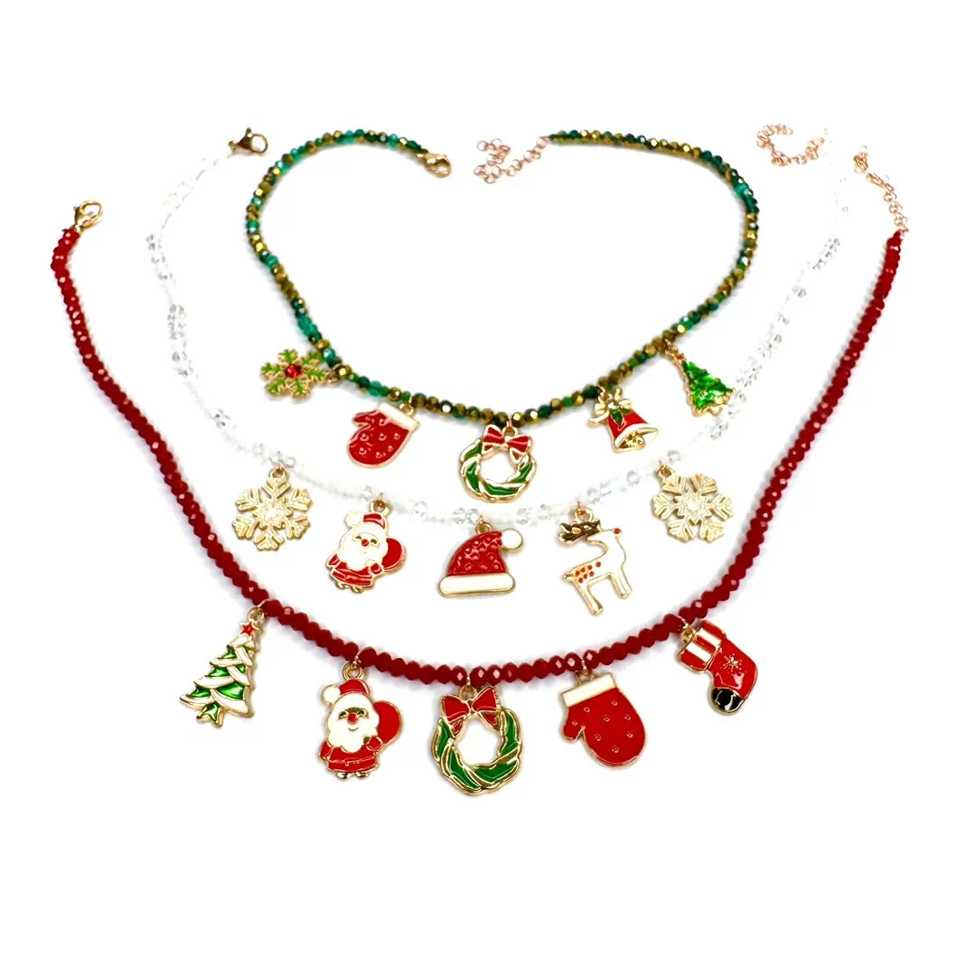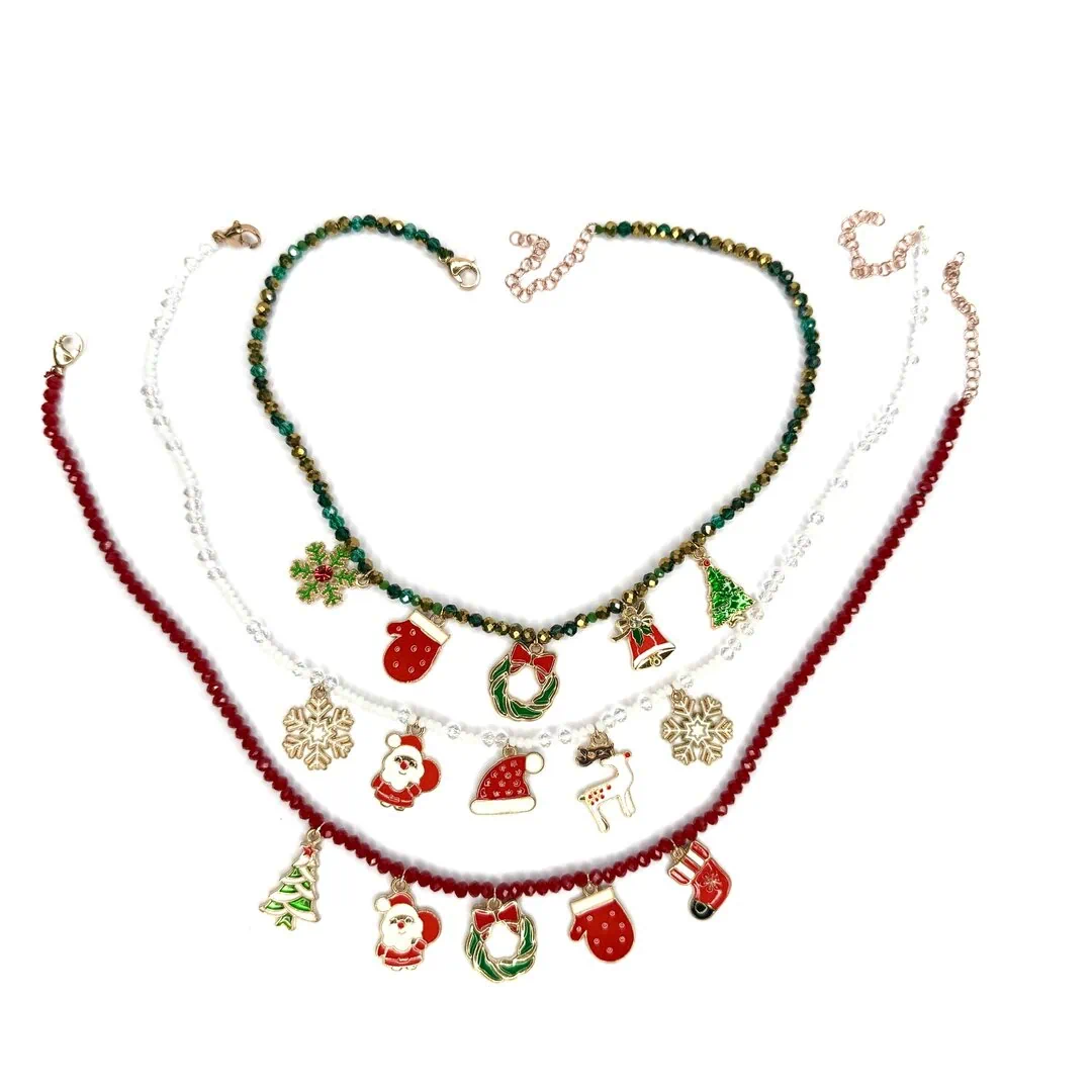 Collana natalizia realizzata con corallini in vetro cristallo colorato e charms smaltati a tema realizzata a mano.