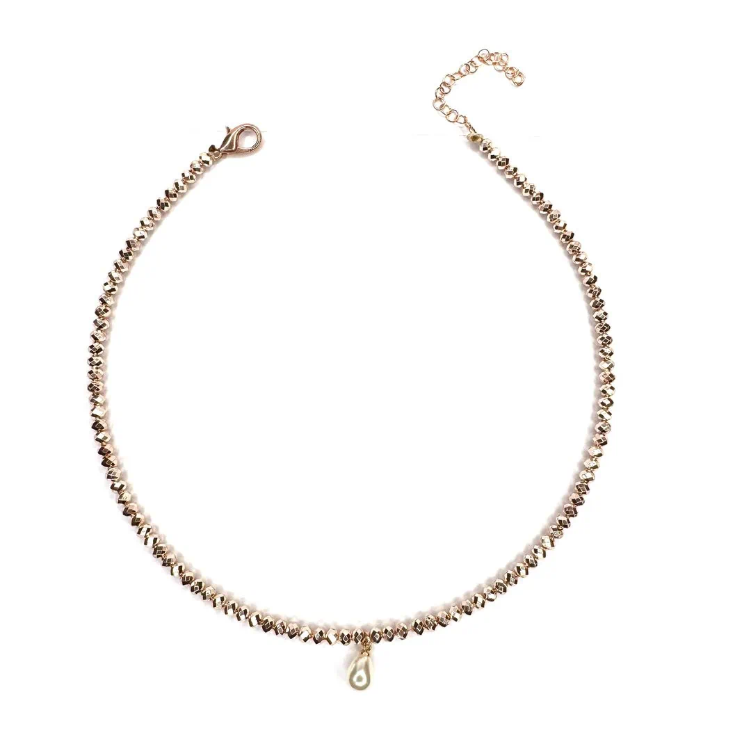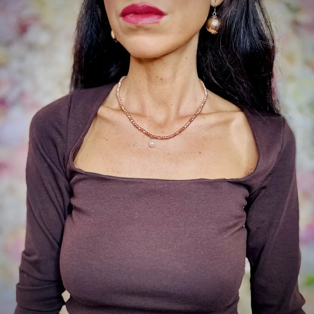 Al centro, un delicato charm a forma di perla a goccia aggiunge un punto luce raffinato ed elegante. La forma della perla a goccia, sempre di grande tendenza, rende questa collana perfetta per ogni occasione, dall’outfit quotidiano a quello più glamour.