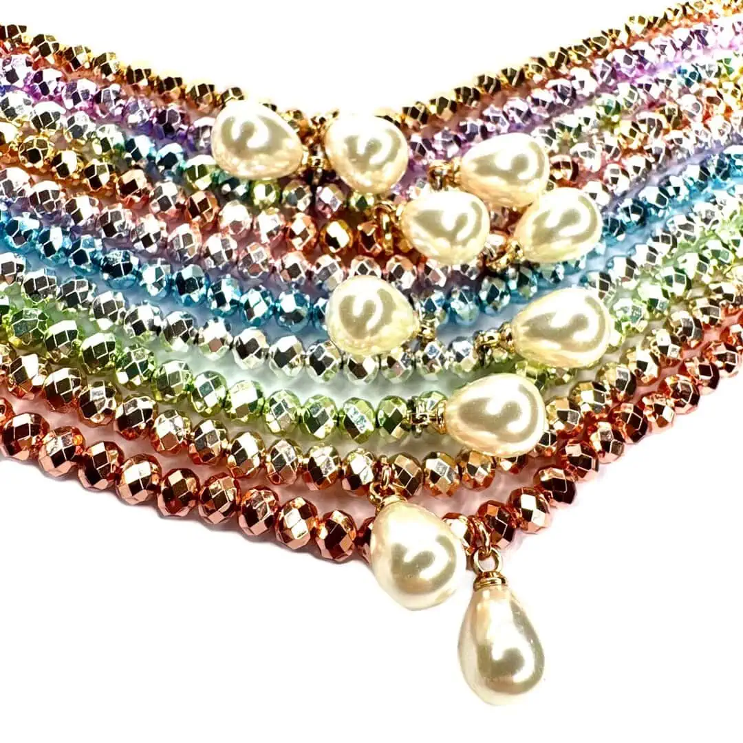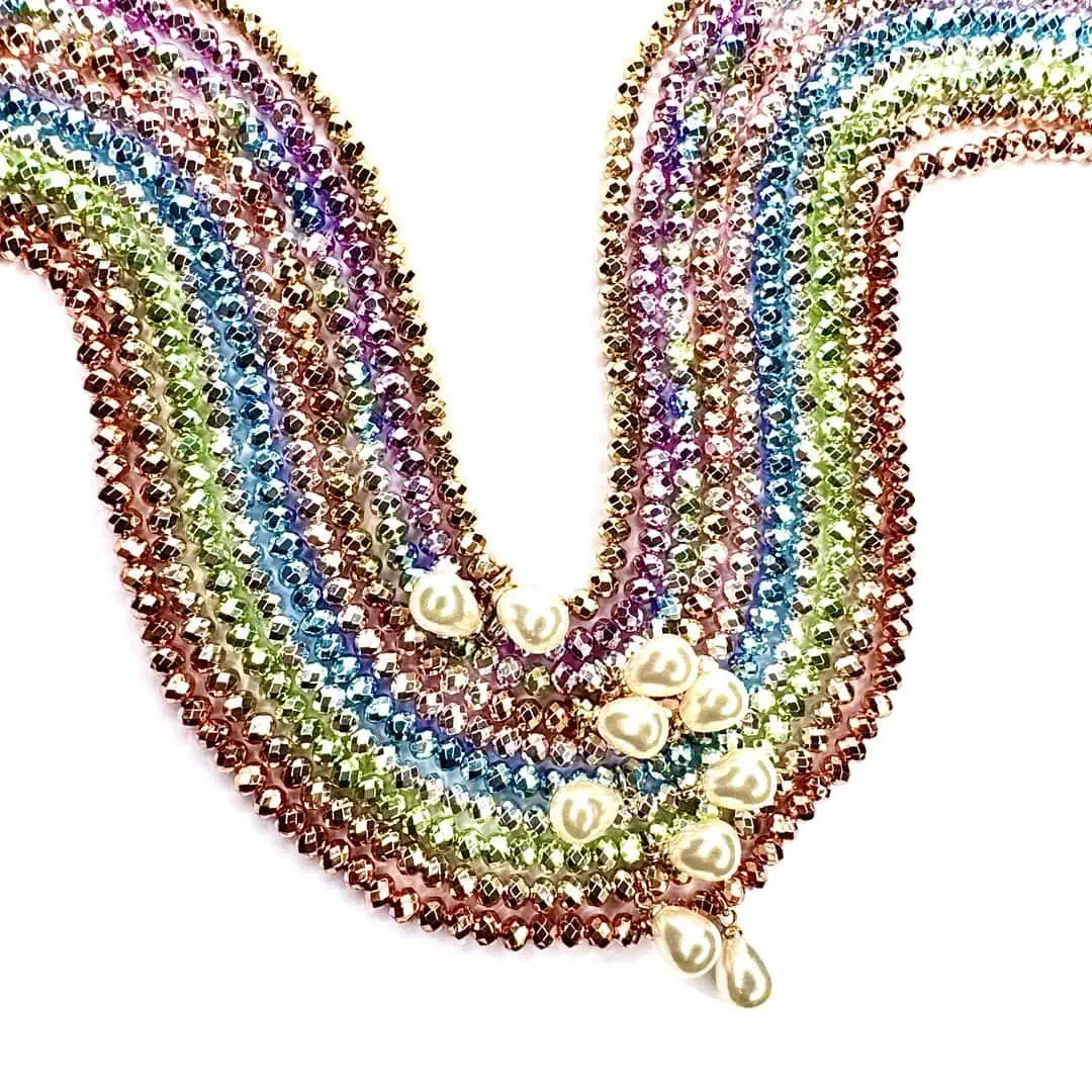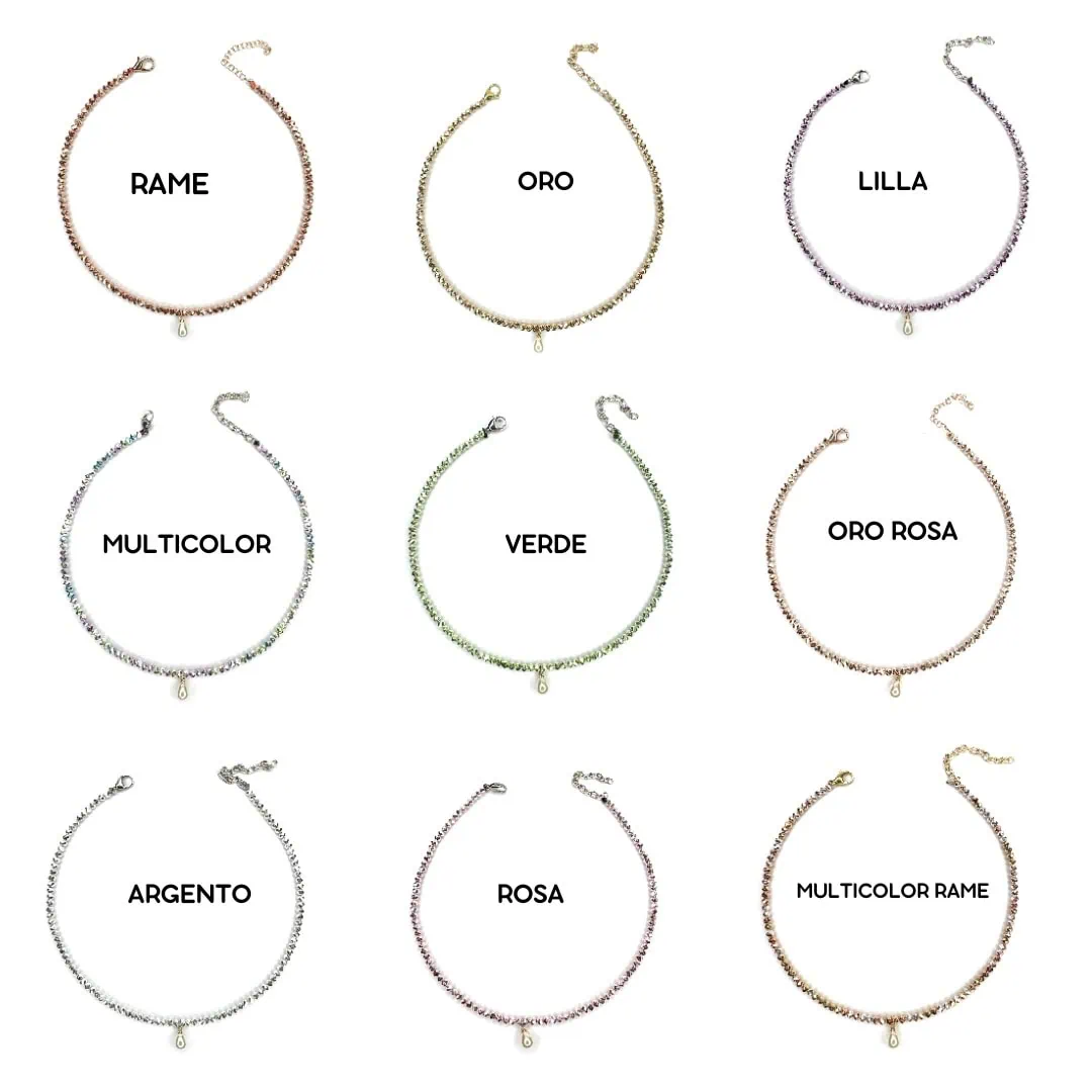 Questo gioiello esclusivo, realizzato interamente a mano in Italia, cattura la luce in modo magico grazie ai suoi corallini di vetro cristalli con uno straordinario effetto cangiante. Ogni colore è più bello dell’altro, garantendoti un accessorio unico.