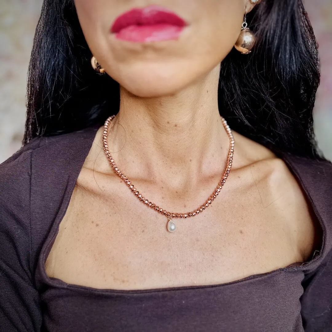 Collana Artigianale Corallini Cangianti e Perla a Goccia