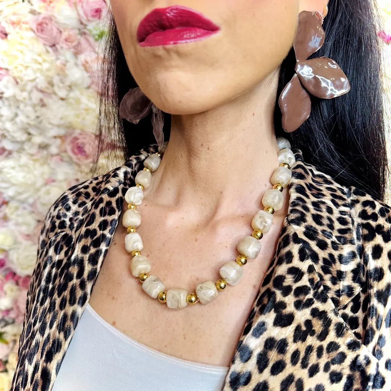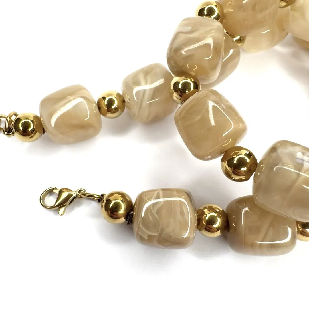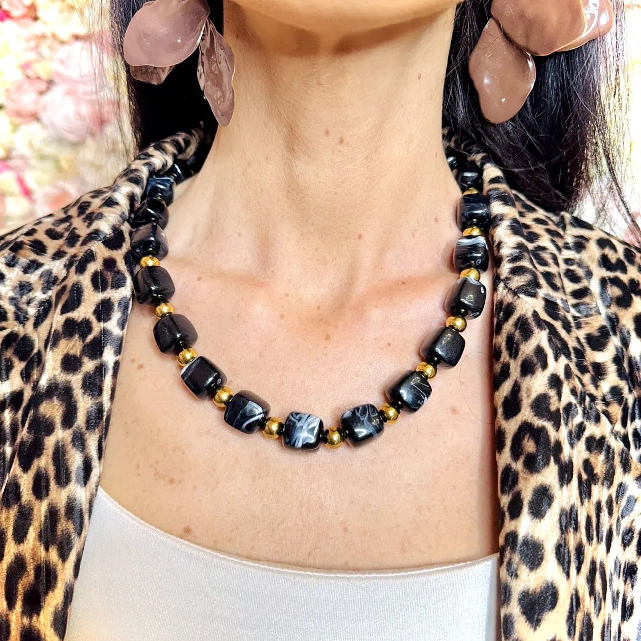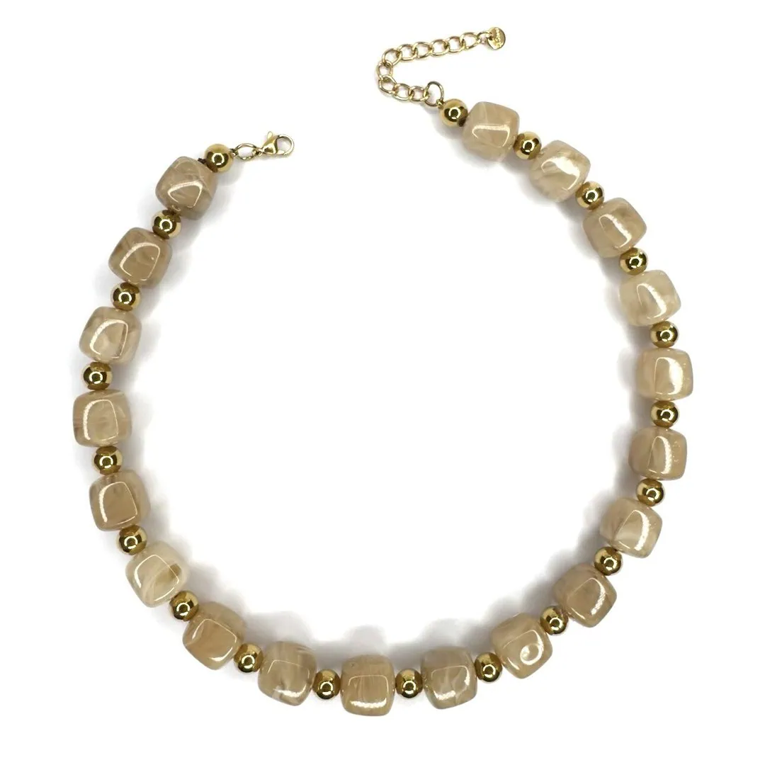 Le pietre cubiche sono armoniosamente intervallate da sfere levigate, creando un movimento visivo che cattura la luce a ogni gesto. Pensata per adattarsi a ogni scollatura, la collana Iside è dotata di una chiusura regolabile che permette di indossarla sia come girocollo minimalista, sia in una versione più morbida. Un pezzo di carattere, perfetto per chi ama distinguersi con l’eleganza intramontabile delle pietre naturali.