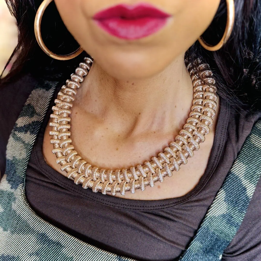 Collana rame girocollo realizzato in maglia metallica lurex color oro rosa