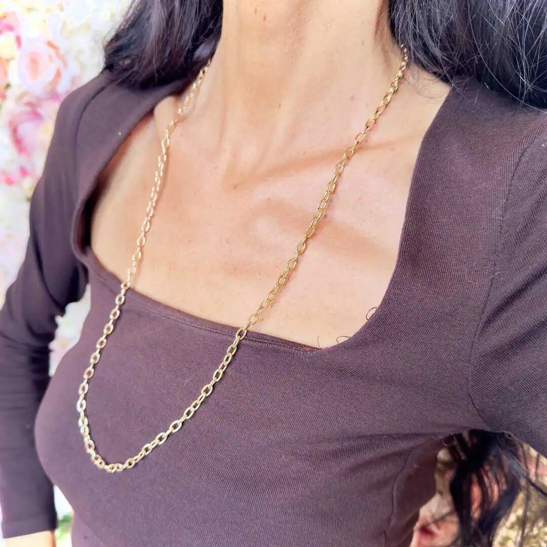 Collana sautoir base lunga a catena con maglia allungata.