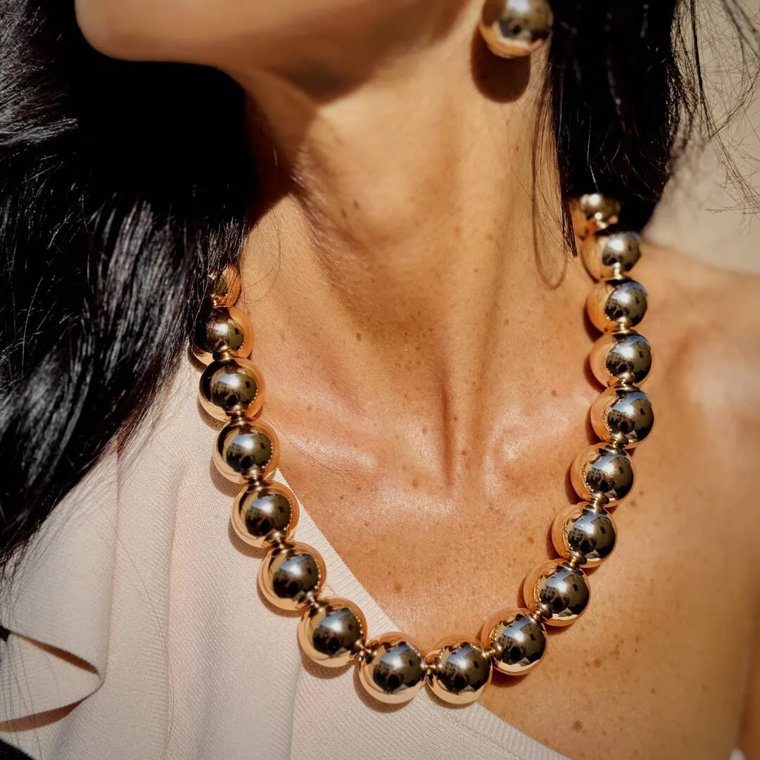 Girocollo di sfere metalliche placcate oro rosa cave leggerissima da indossare ma di grande effetto.
