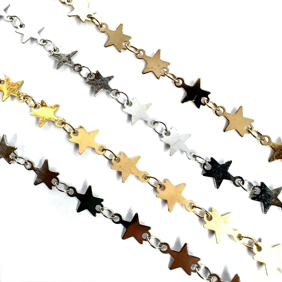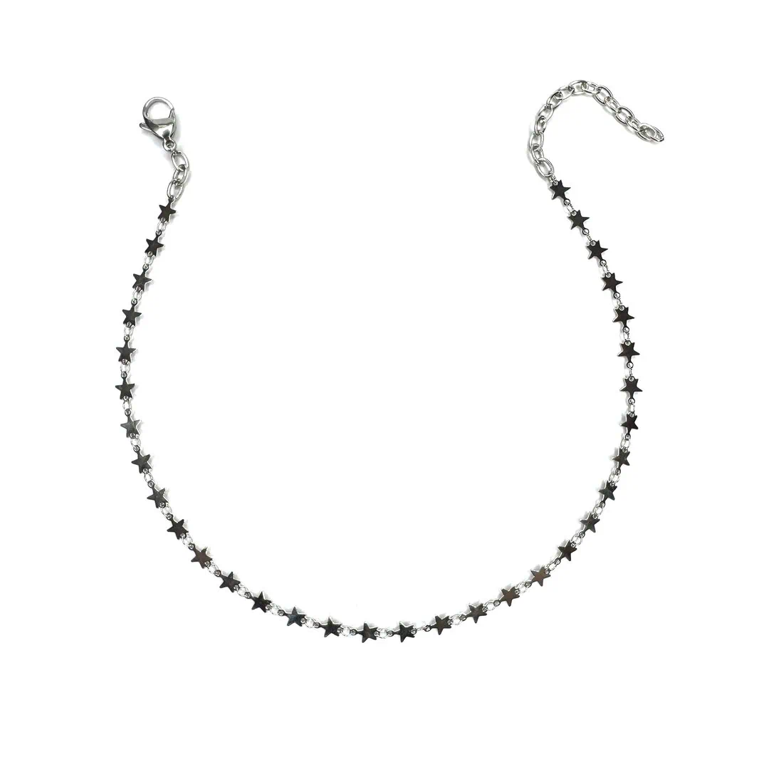 Collana Stelle girocollo realizzato con stelline in acciaio placcato montate come connettore tagliate a laser.