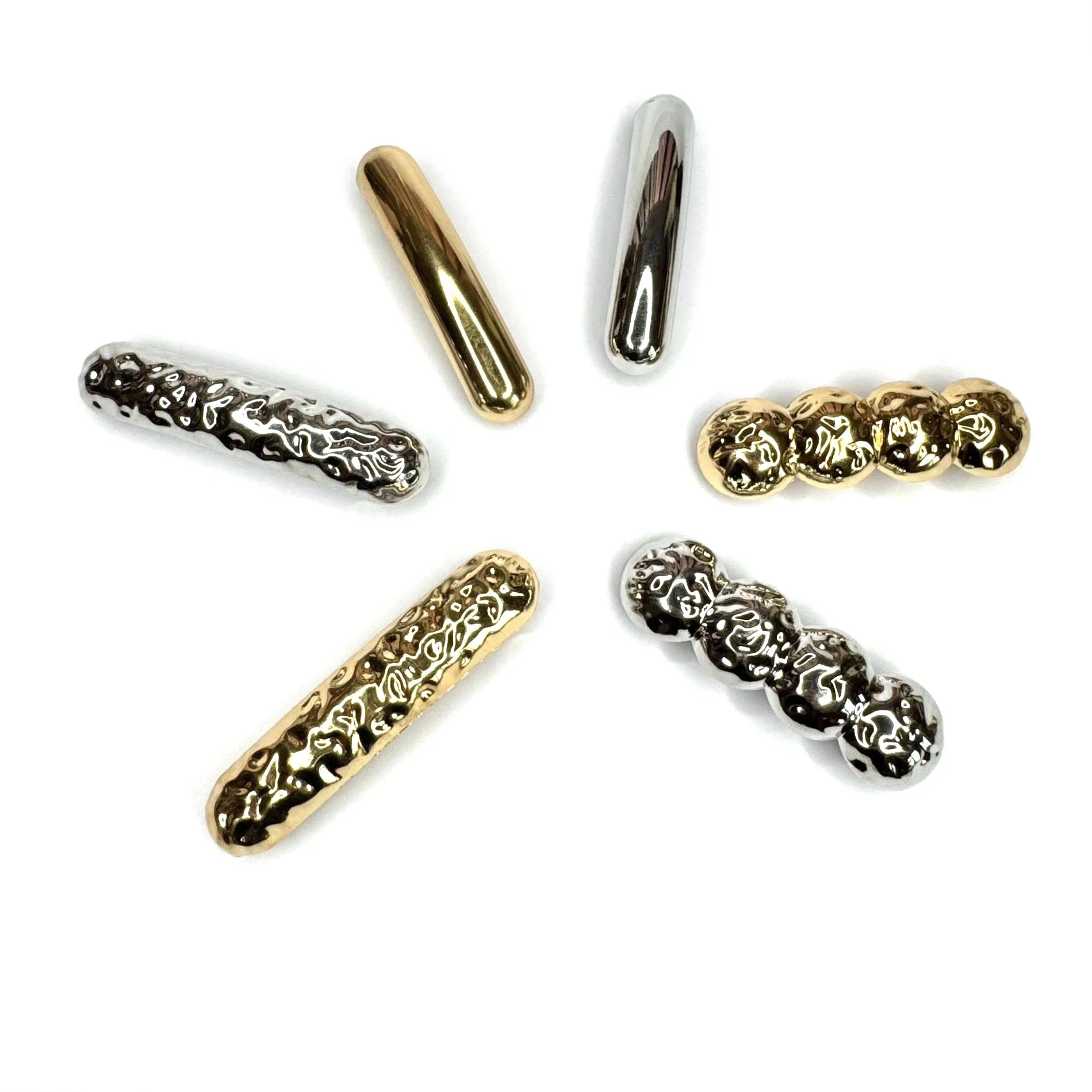 Ogni parte metallica è placcata oro tenue o argento, ed è priva di nichel, cadmio e piombo, secondo la normativa CE Reach.