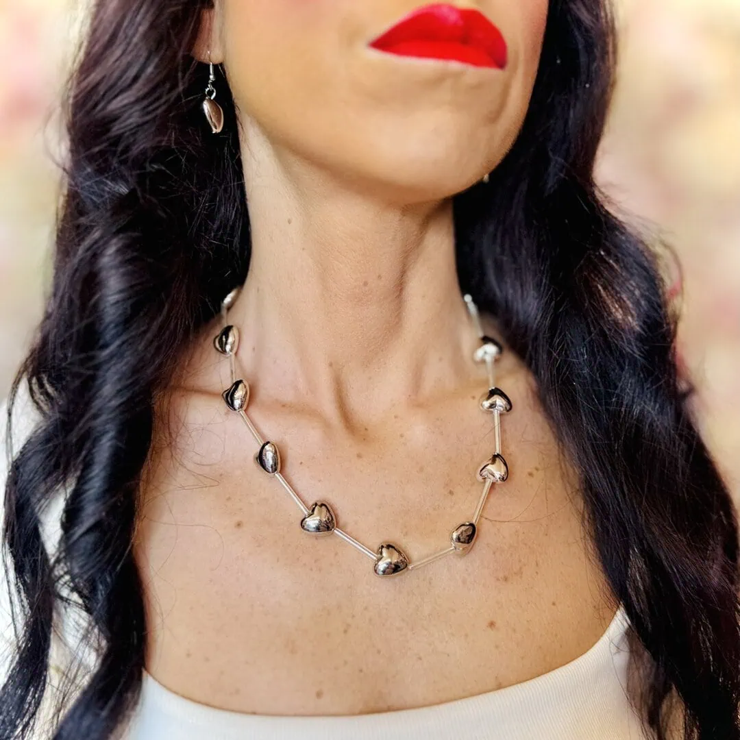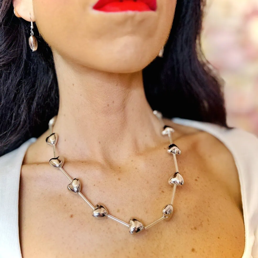 • GIFT BOX SILVER: contiene una collana con cuori 3d di lunghezza regolabile con moschettone da 44cm a 50cm ed orecchini con montatura ad amo con cuore 3d pendente di 1 cm x 1 cm, entrambe nella colorazione silver.