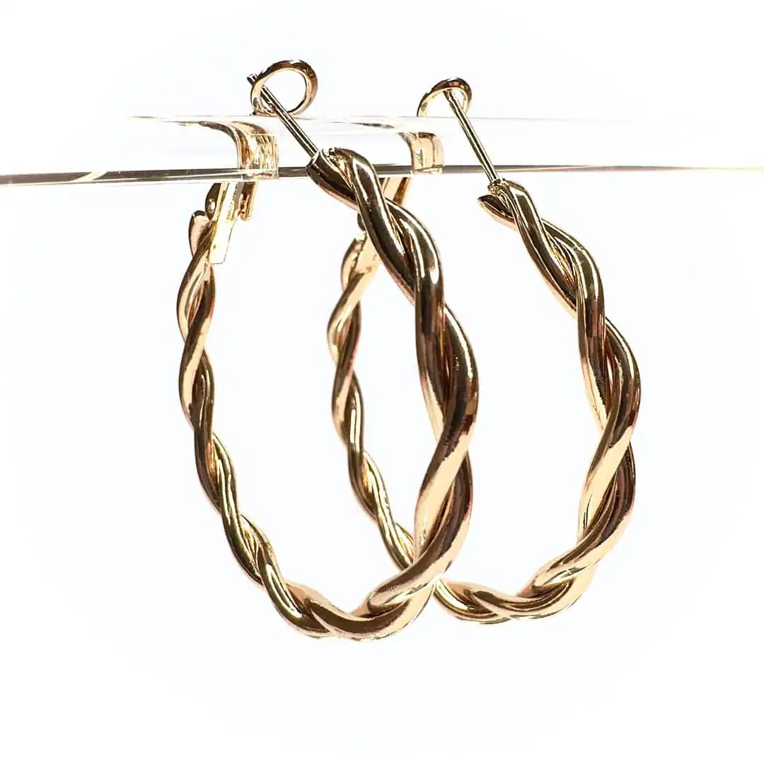 Orecchini cerchio grande color oro rosa con distintiva lavorazione torchon. Venduti in coppia. Un accessorio must-have per un tocco di stile unico.