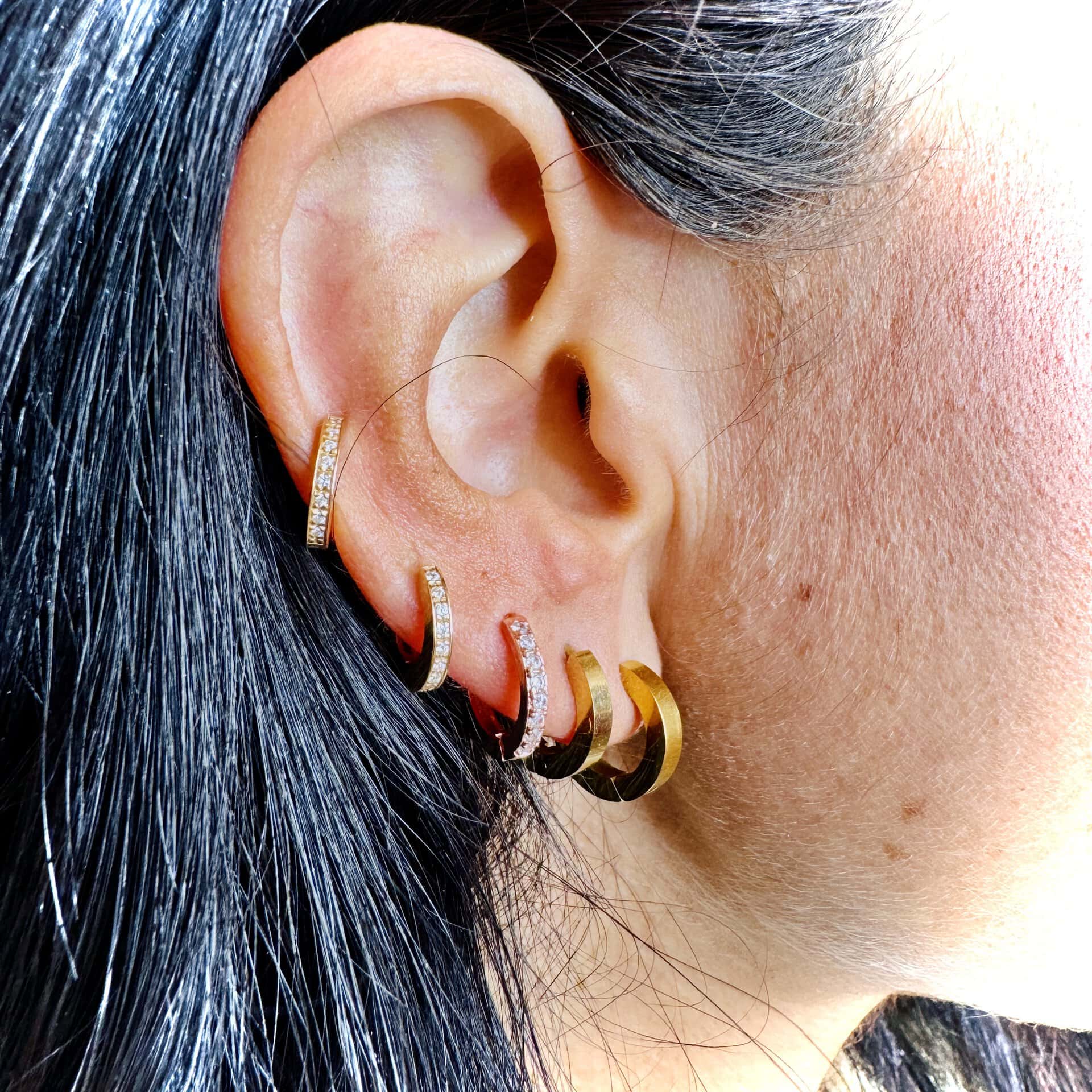 Sono perfetti per un look essenziale e pulito, ma anche da indossare sui fori più alti abbinati tra di loro con i tantissimi modelli di tutta la linea di orecchini mini cerchietto che trovi nel nostro Shop Online.