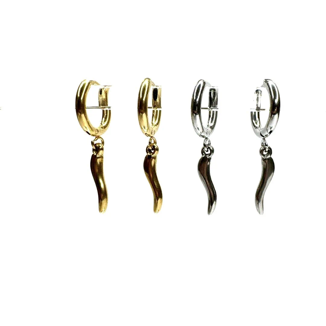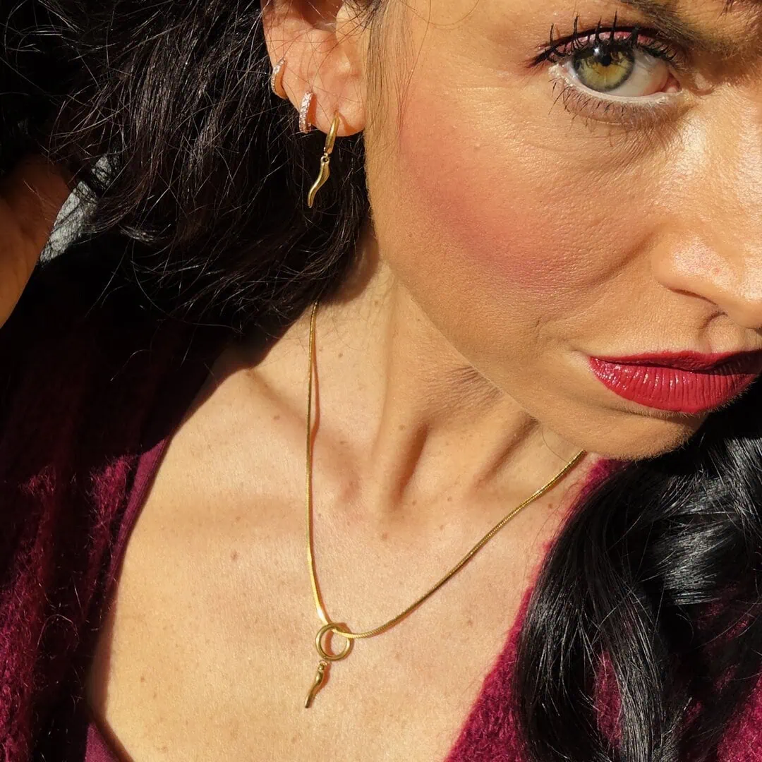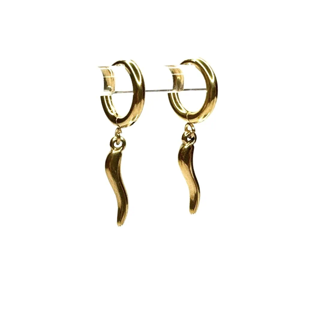 • Orecchino a cerchietto con charm a forma di cornetto porta fortuna .
