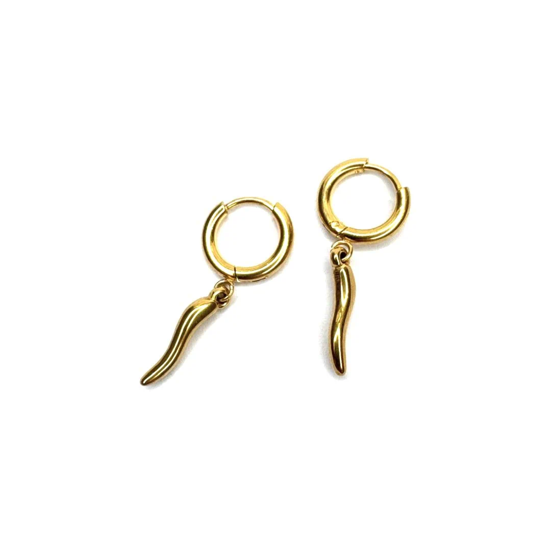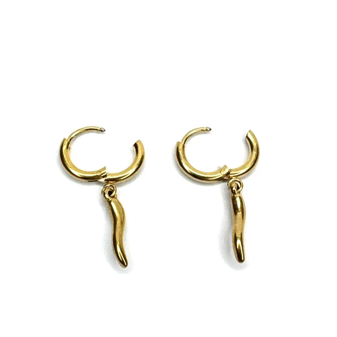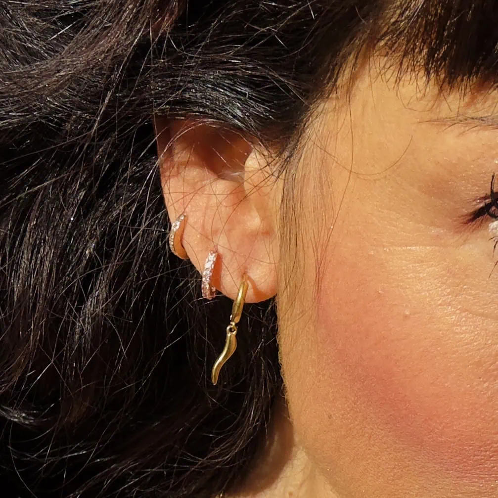 • Orecchino a cerchietto con charm a forma di cornetto porta fortuna .
