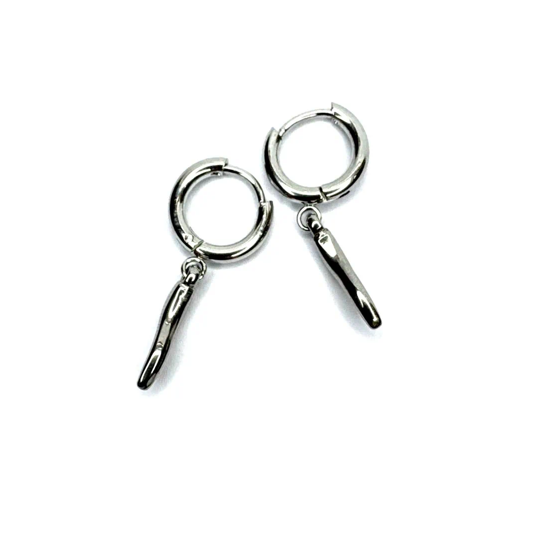 Orecchini corno in acciaio a cerchietto.