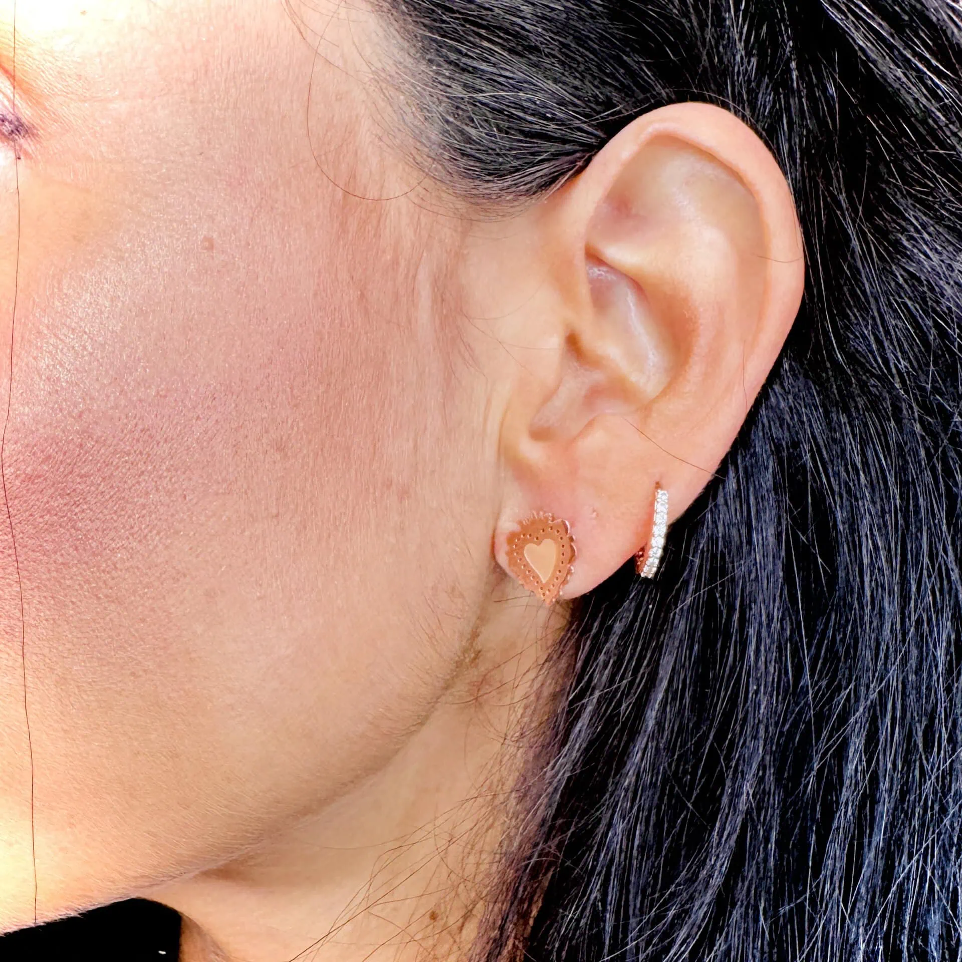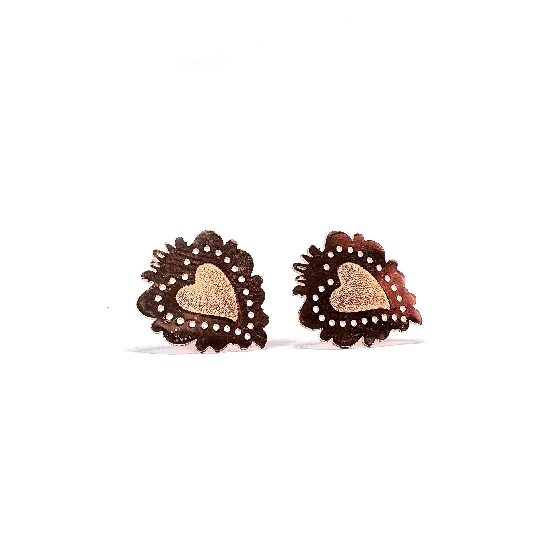 Orecchini cuore votivo a lobo in acciaio placcato oro rosa.