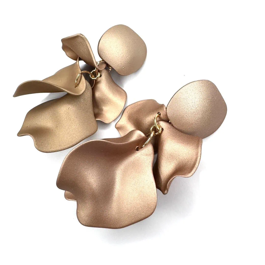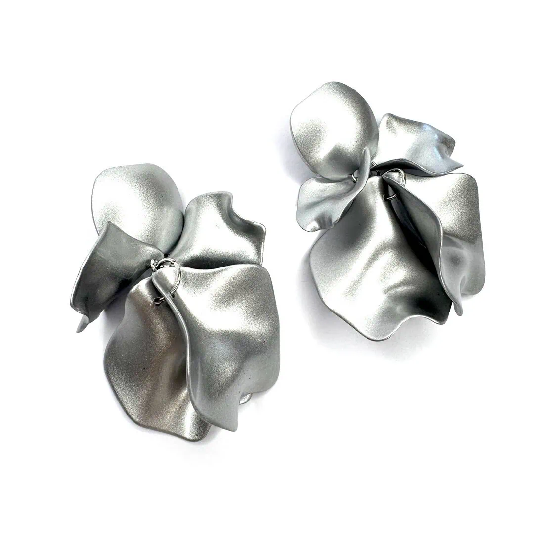 Orecchini foglia super leggeri realizzati con stampante 3D in polimero satinato.