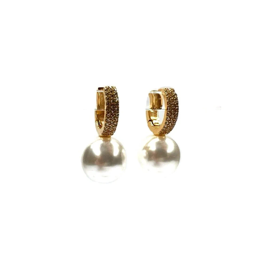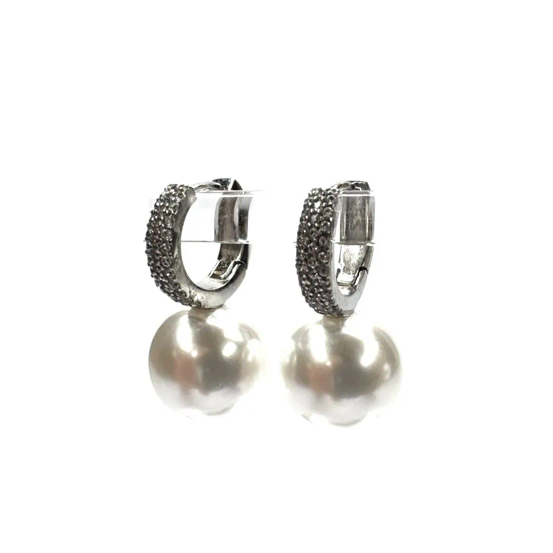 Orecchini perla con cerchietto della Linea Perlage. Realizzati con perla su cerchiettino strass.