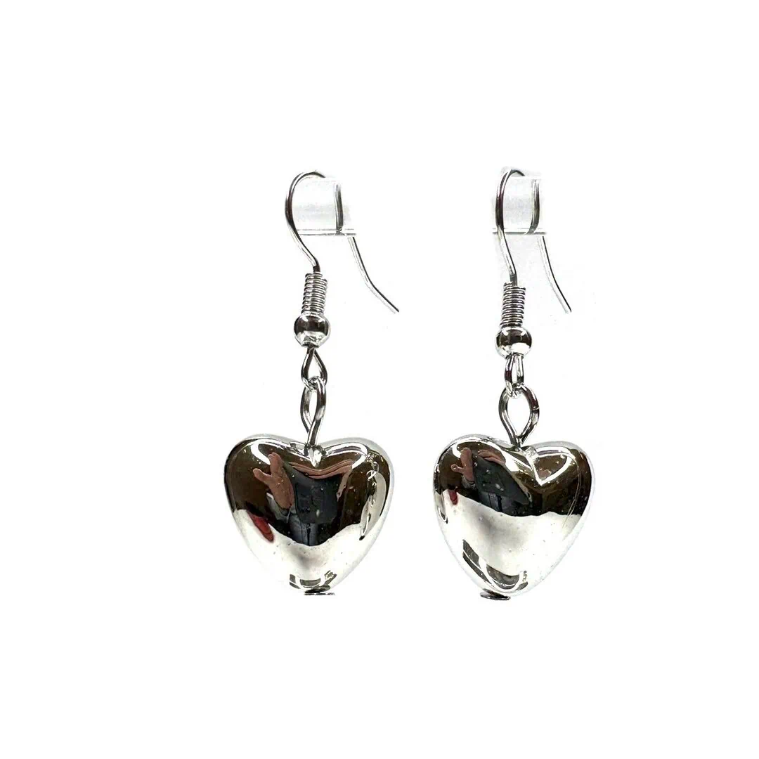 Orecchini san valentino realizzati con cuori 3d in variante oro o argento, disponibile anche il girocollo abbinato.