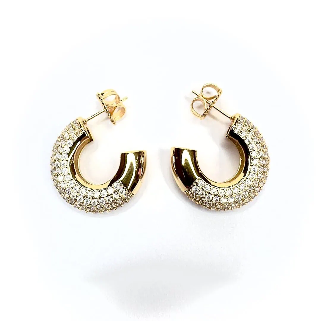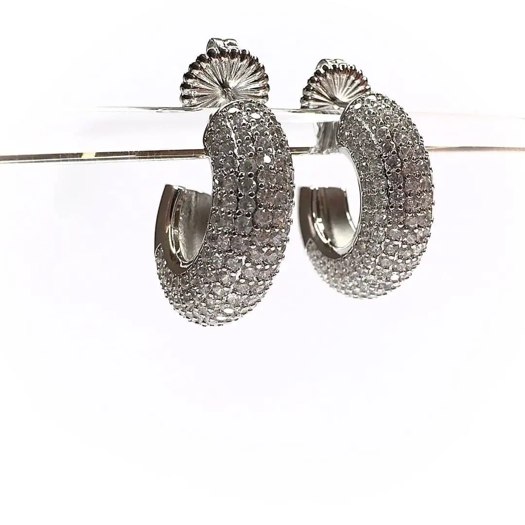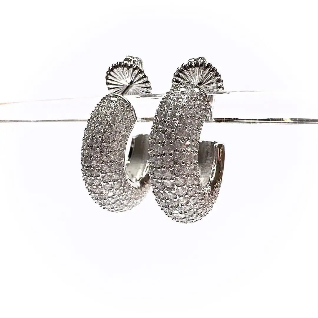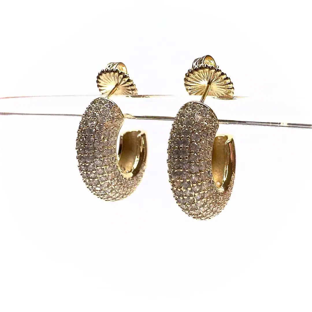 Orecchini strass a cerchio venduti a coppia e disponibile in versione con base oro o argento.