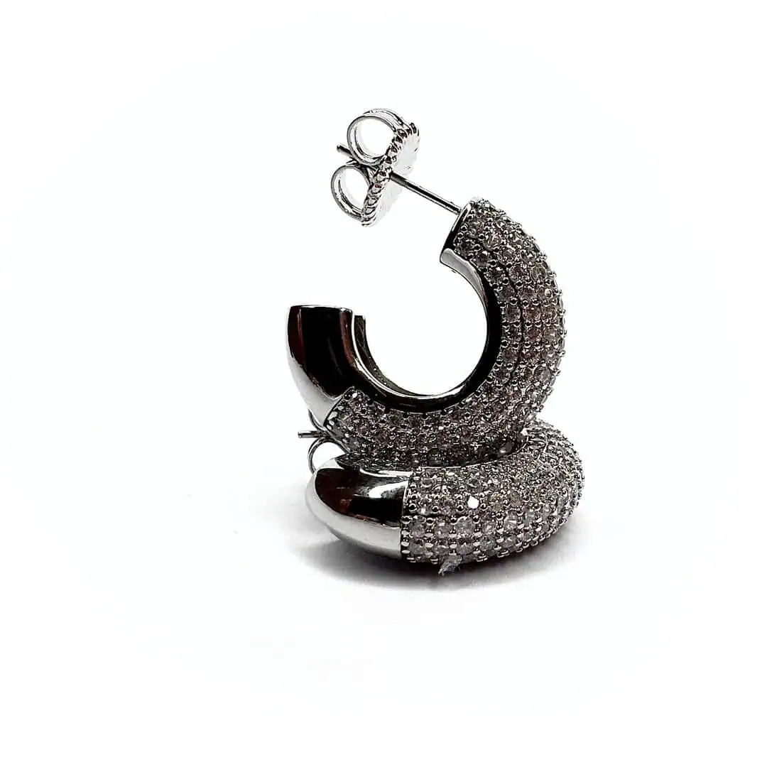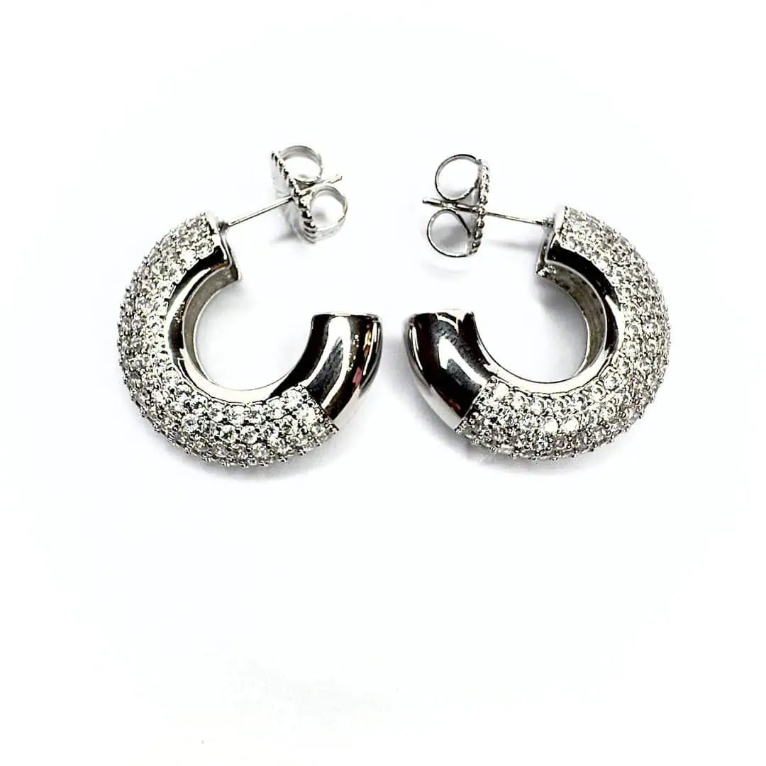 Orecchini strass cerchio con chiusura a perno disponibile in variante oro e argento.